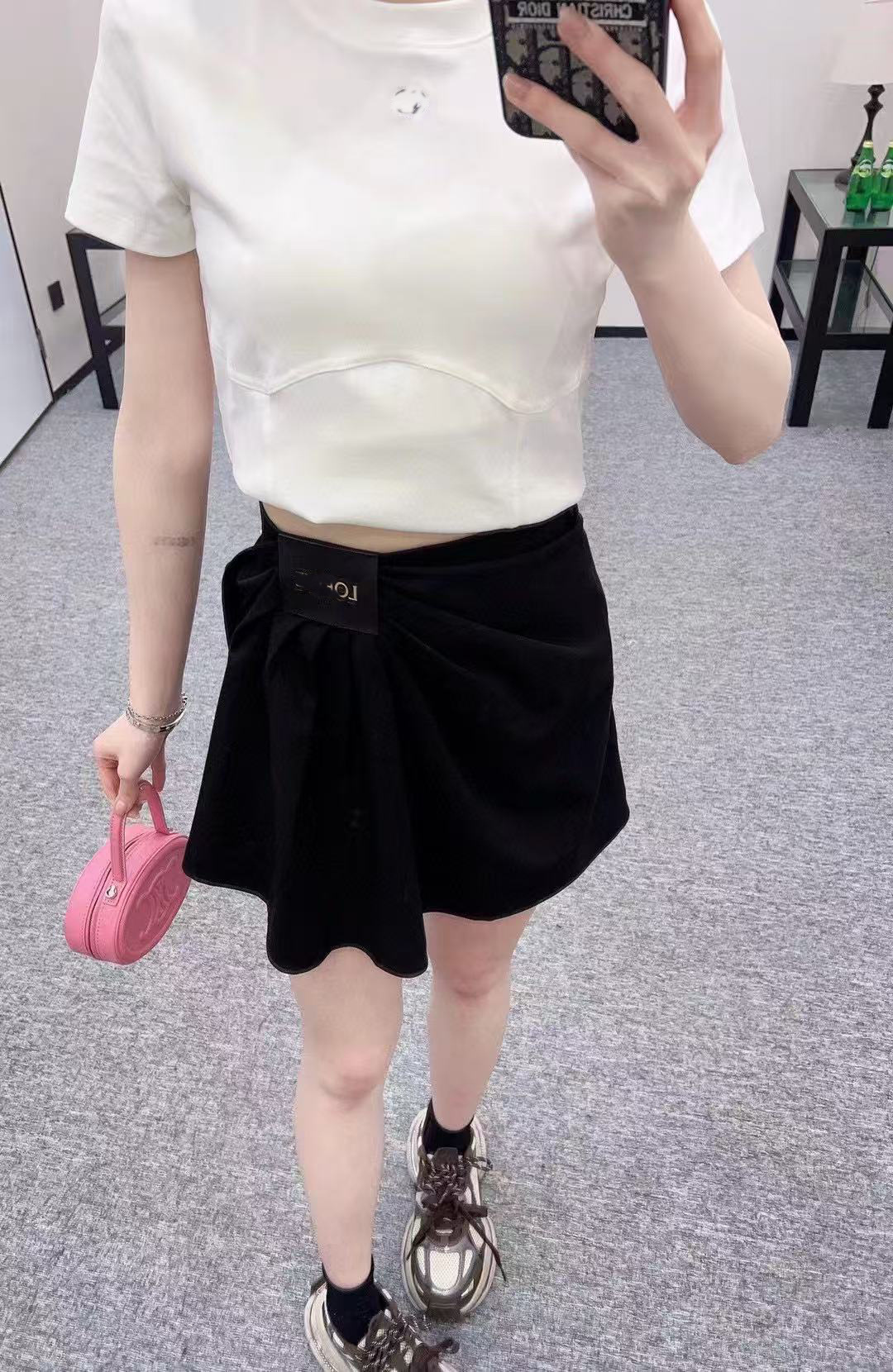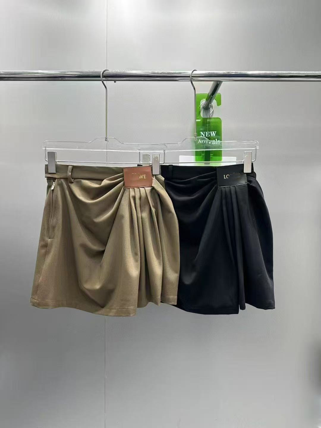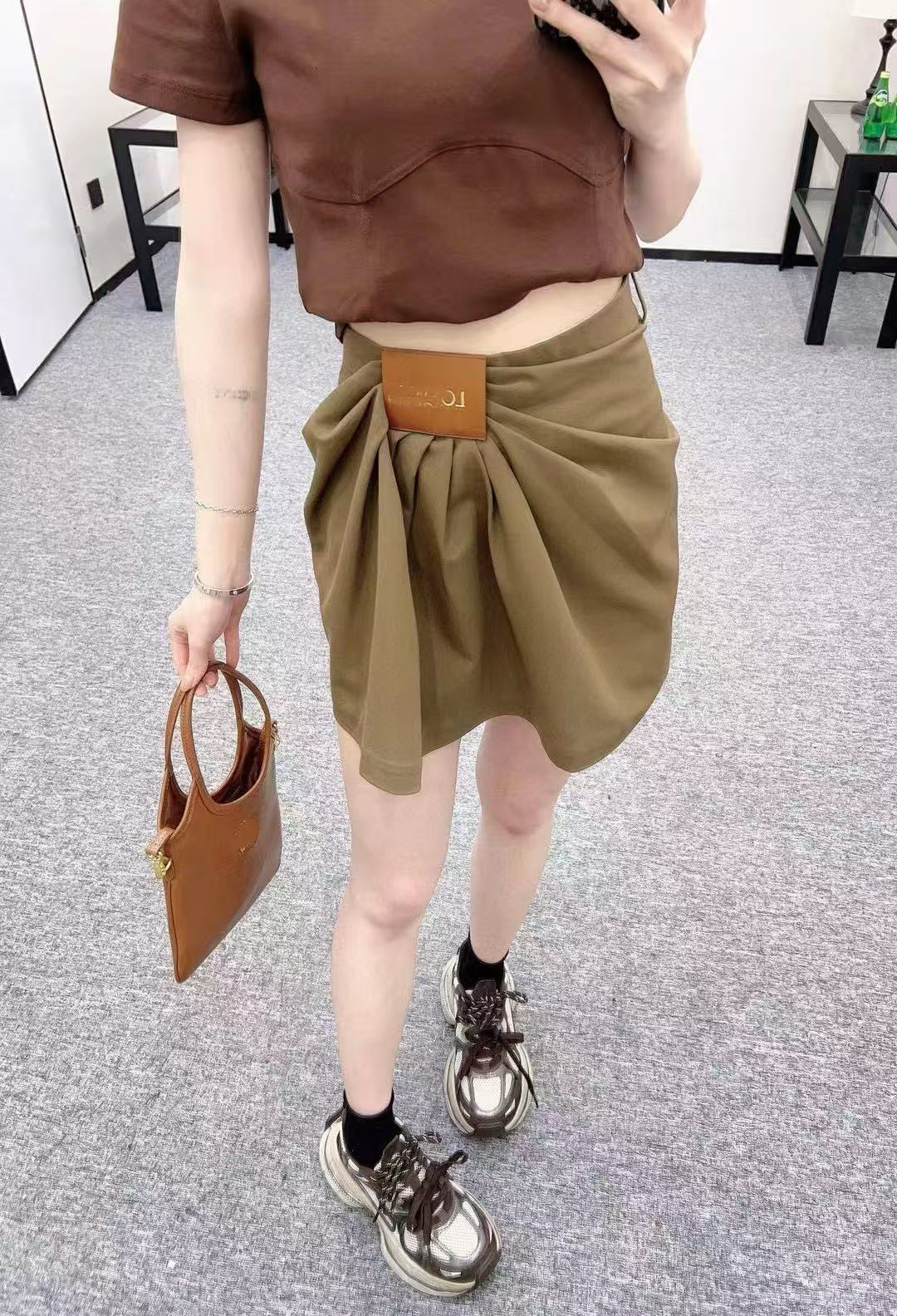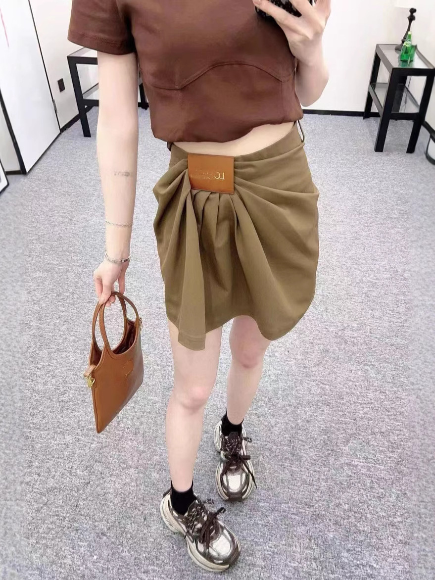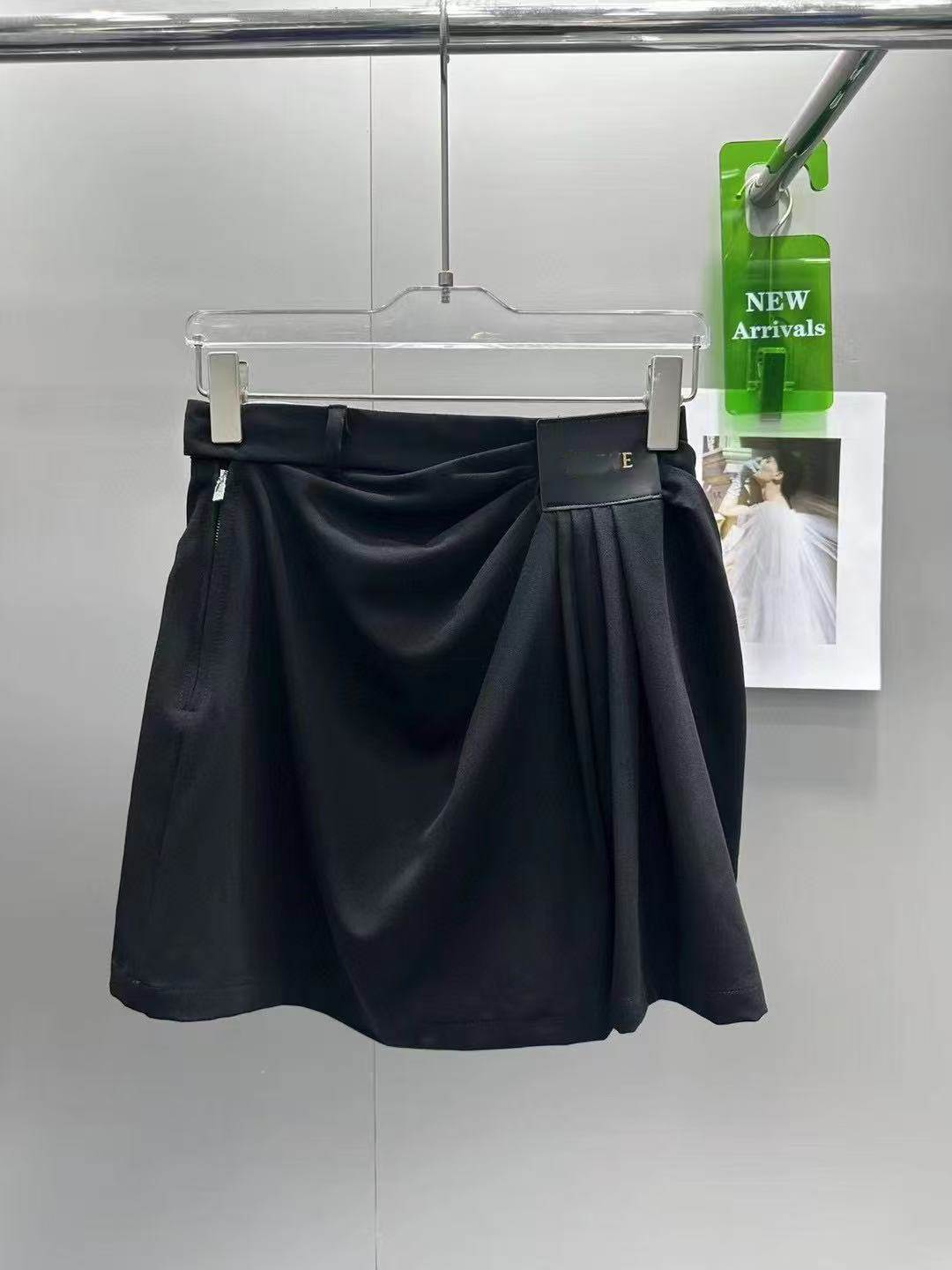 Niche 25 봄 여름 신작 블랙 불규칙한 가죽 라벨 주름 하이 웨이스트 플리츠 스커트 여성 미니 정장 스커트