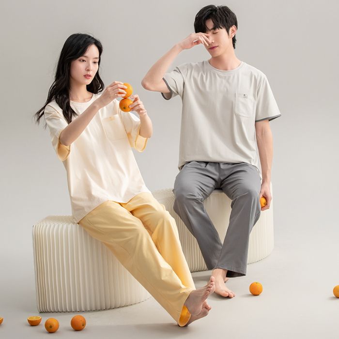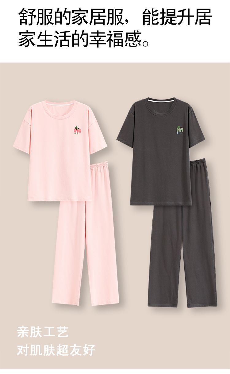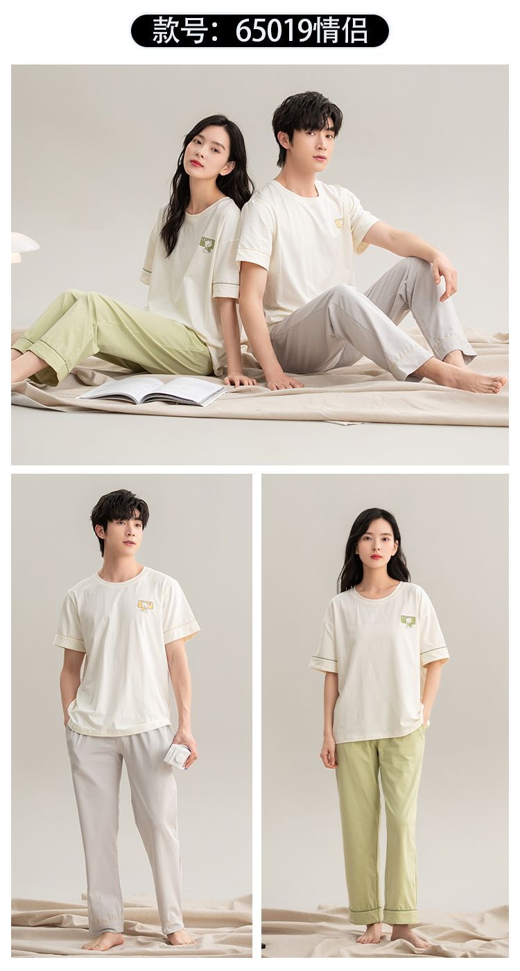 커플을위한 여름 순수 코튼 반팔 바지 잠옷 클래스 A 항균 여성 2025 신사복 코튼 홈웨어 세트스토어 가기