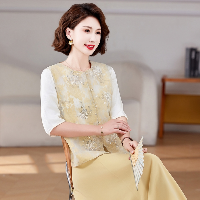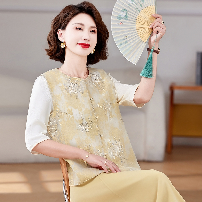 도매 폭발 여름 새로운 중국 스타일 조끼 복고풍 국가 스타일 비드 버클 하이 센스 조끼스토어 가기