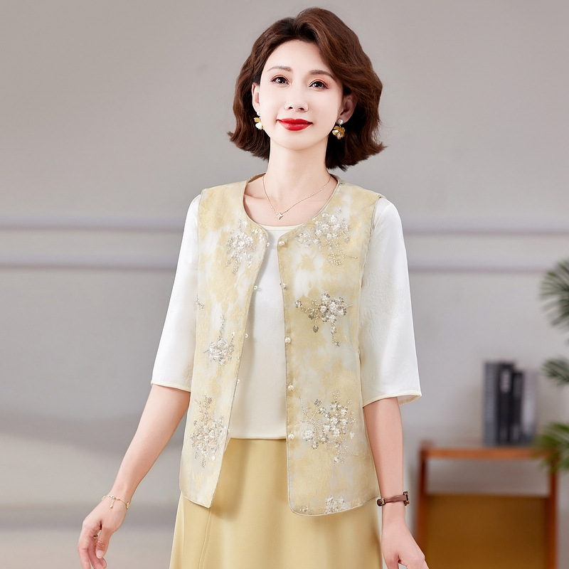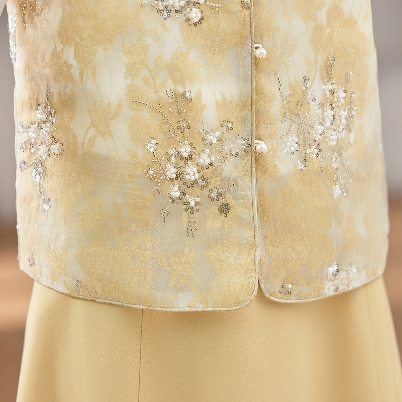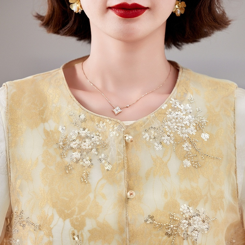도매 폭발 여름 새로운 중국 스타일 조끼 복고풍 국가 스타일 비드 버클 하이 센스 조끼