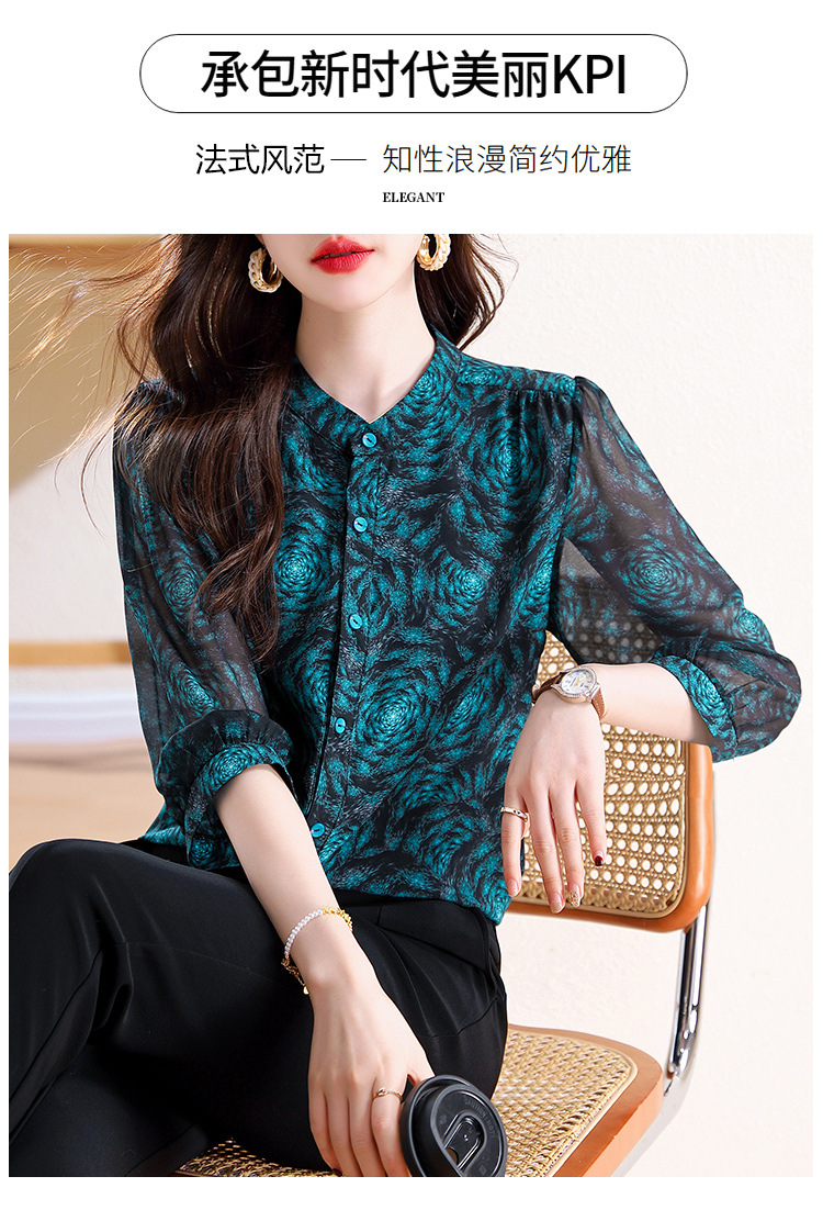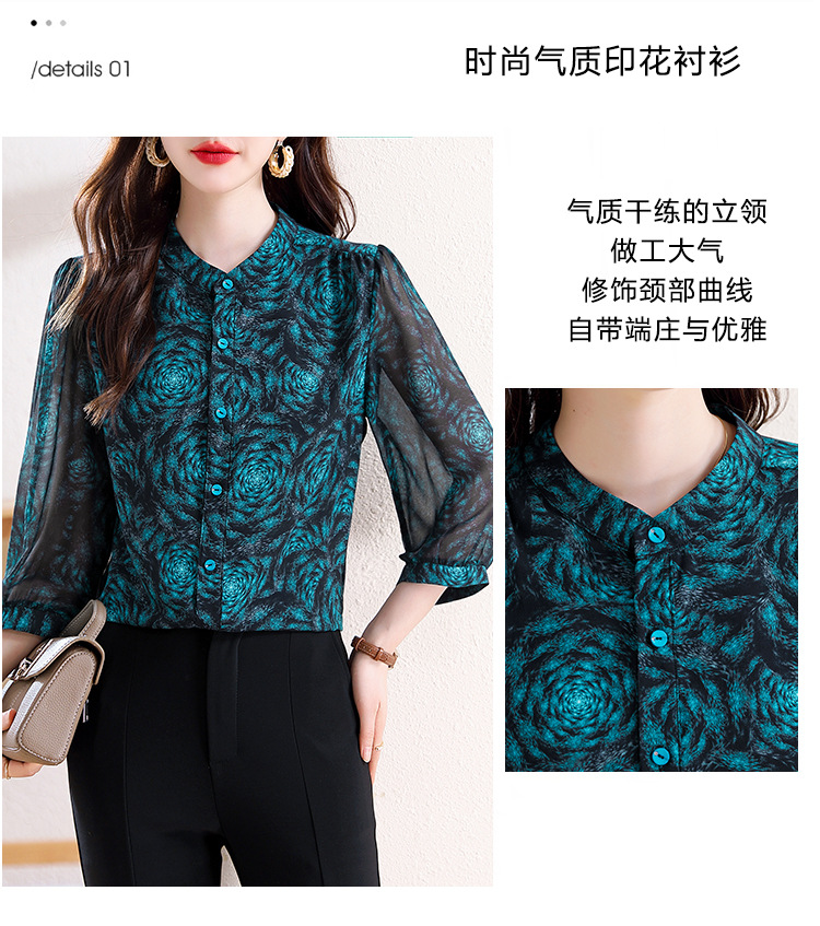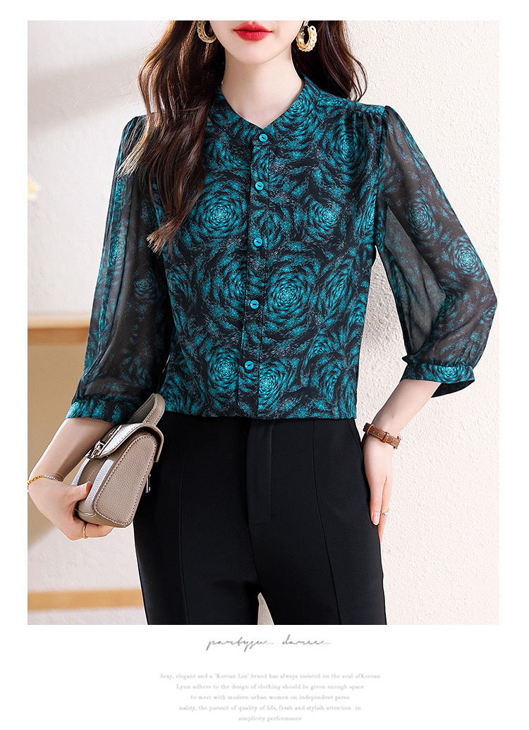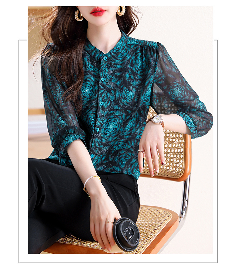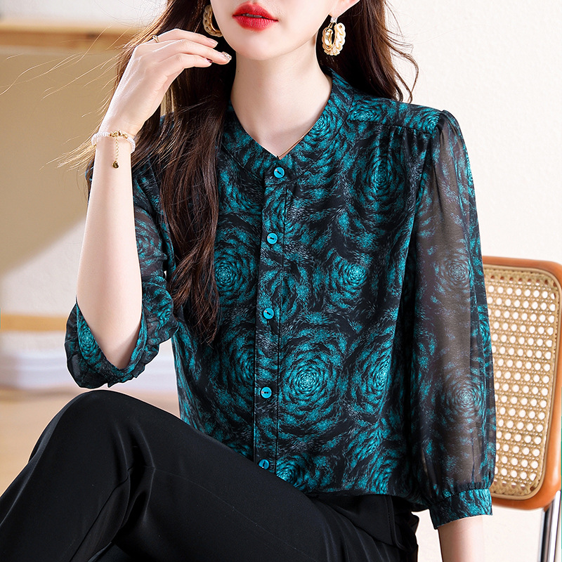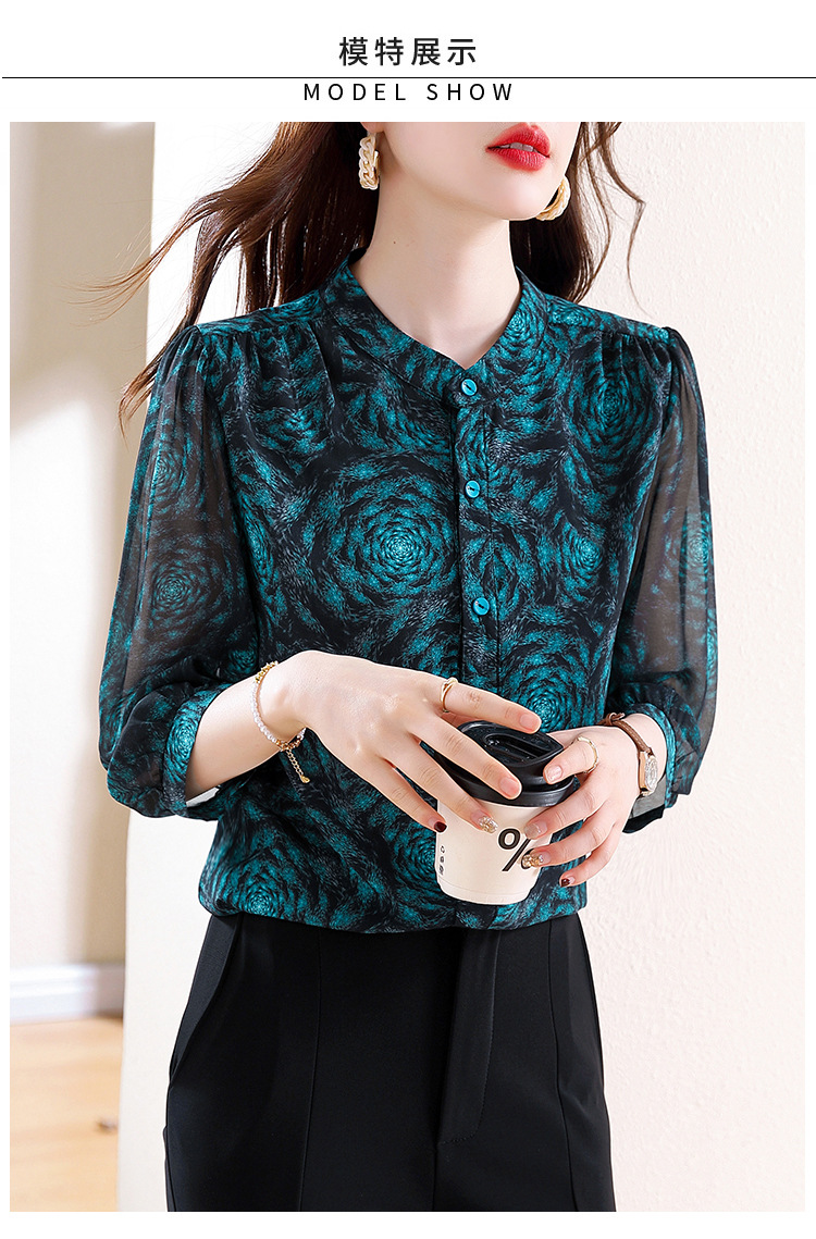미드 슬리브 패션 프린트 쉬폰 셔츠 여성 2025 봄과 여름 새로운 꽃 셔츠 여성 슬림 기질 셔츠 도매스토어 가기