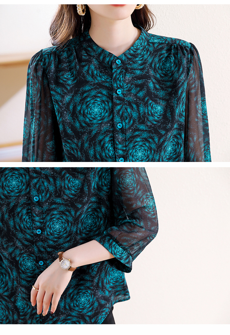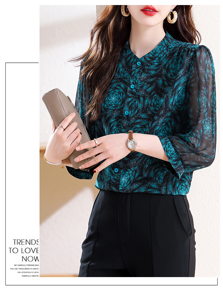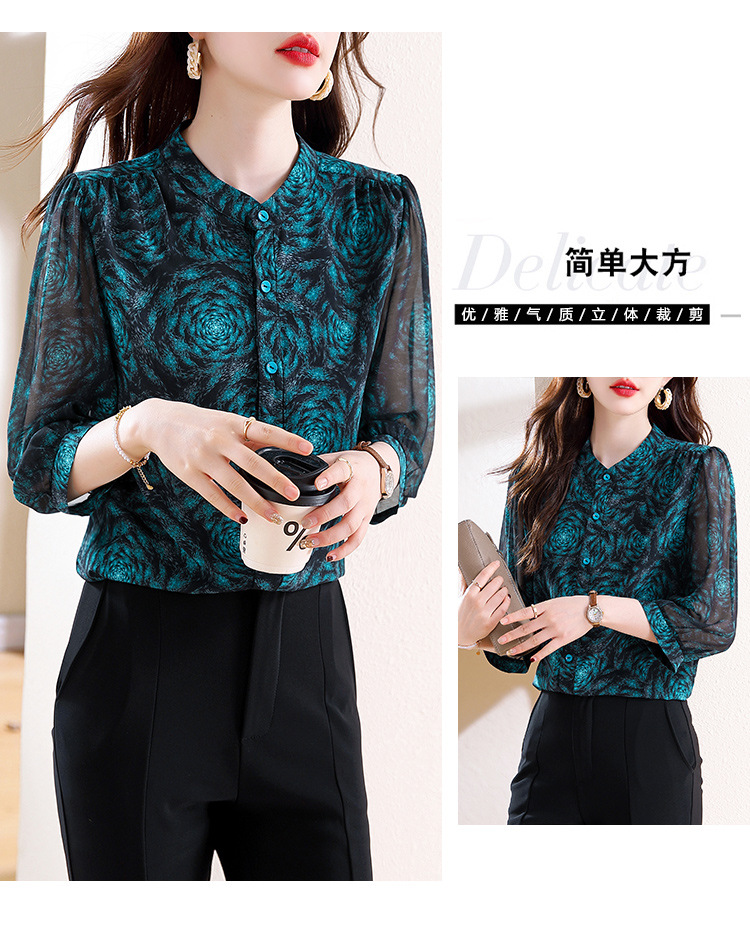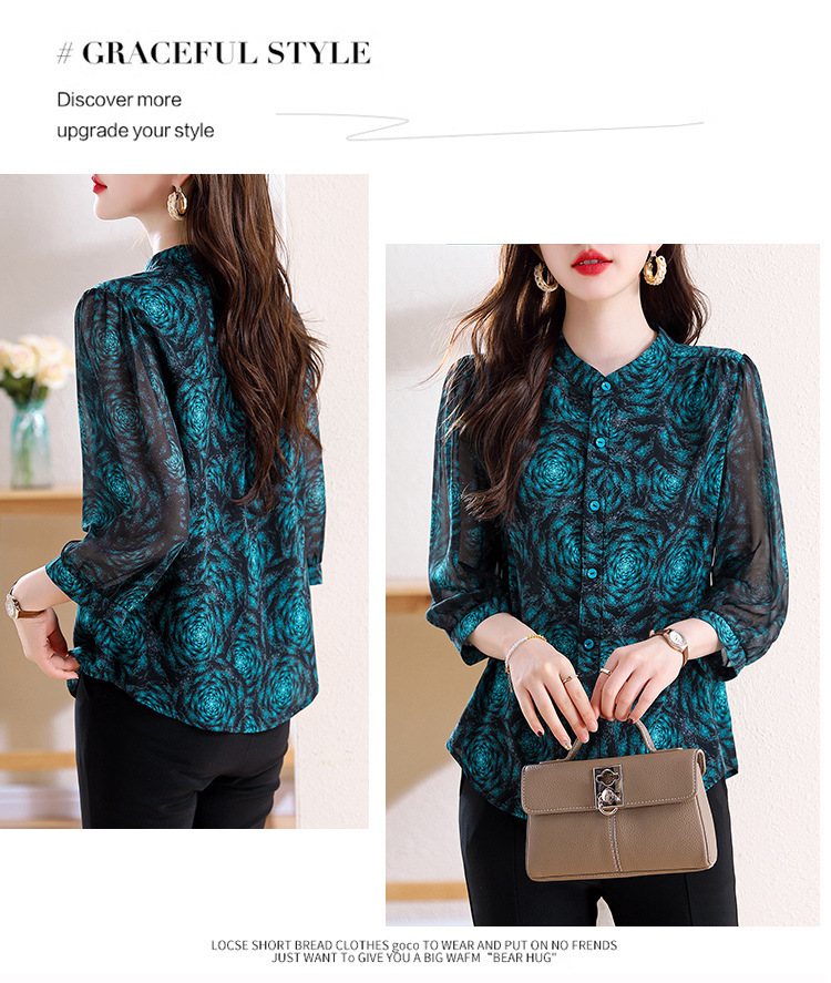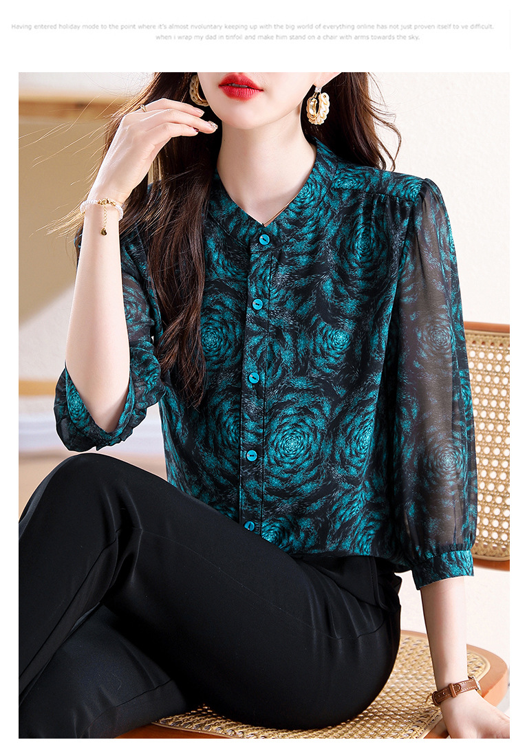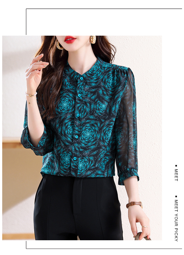 미드 슬리브 패션 프린트 쉬폰 셔츠 여성 2025 봄과 여름 새로운 꽃 셔츠 여성 슬림 기질 셔츠 도매스토어 가기