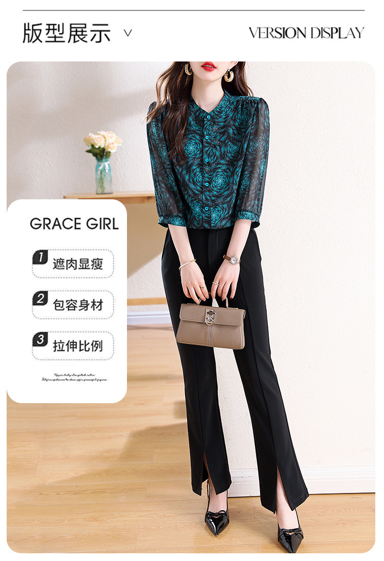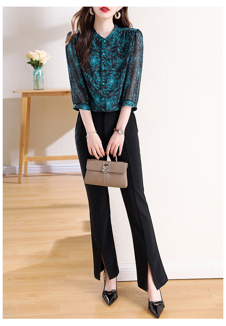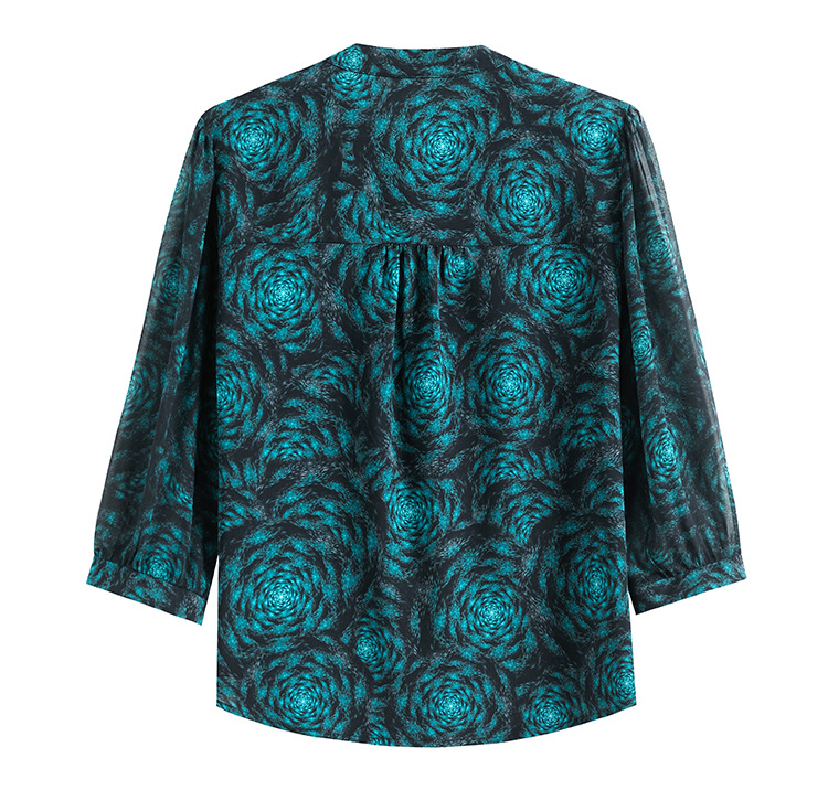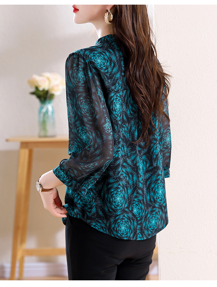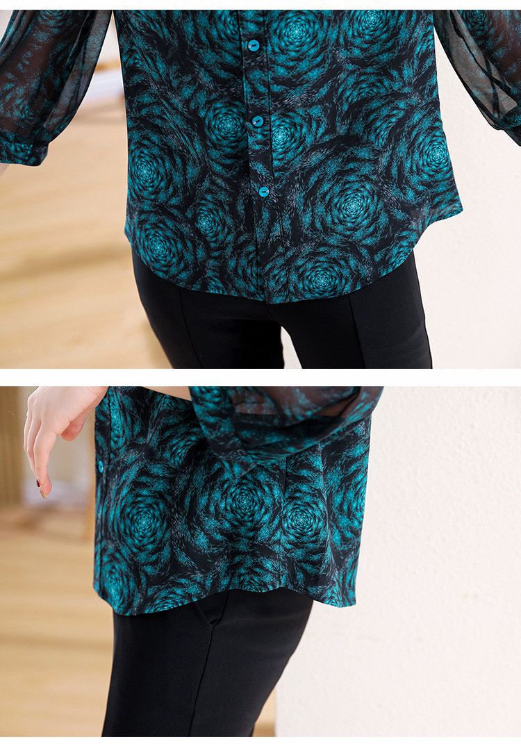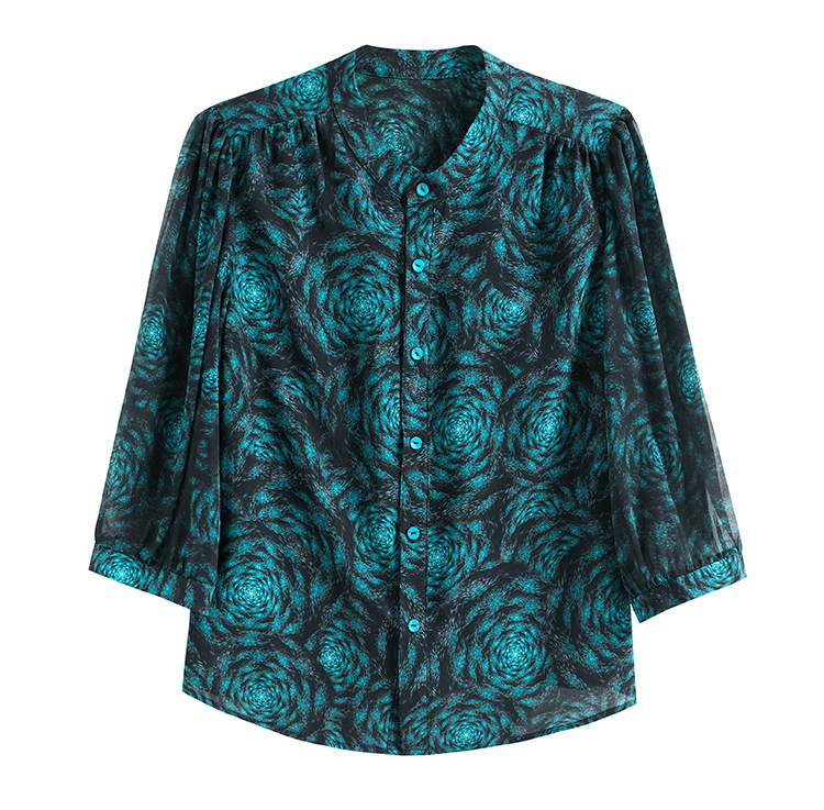 미드 슬리브 패션 프린트 쉬폰 셔츠 여성 2025 봄과 여름 새로운 꽃 셔츠 여성 슬림 기질 셔츠 도매스토어 가기