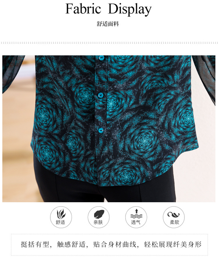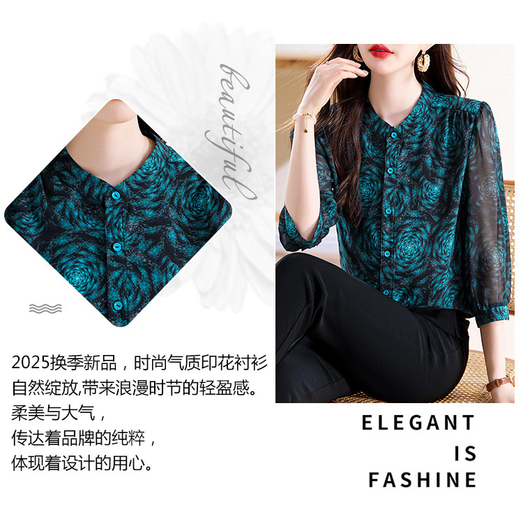 미드 슬리브 패션 프린트 쉬폰 셔츠 여성 2025 봄과 여름 새로운 꽃 셔츠 여성 슬림 기질 셔츠 도매