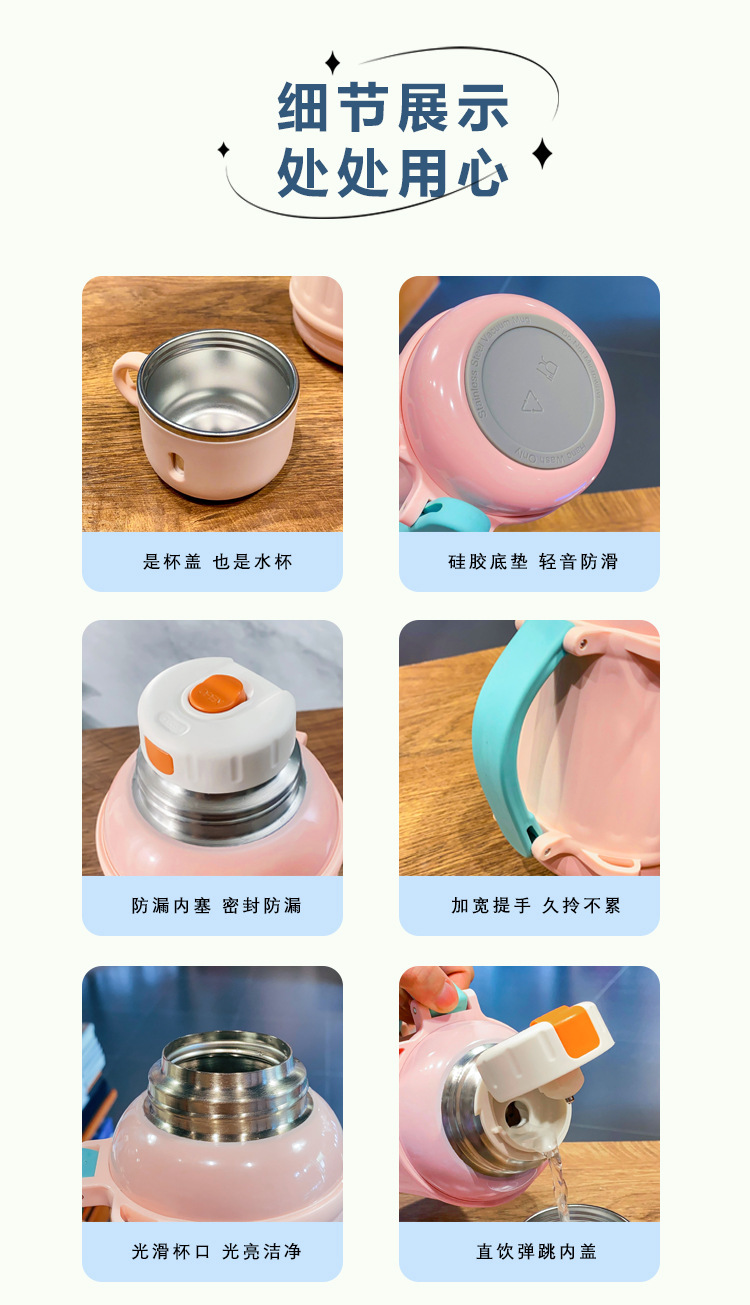 Ins 대용량, 고급스러운 창의적인 크림 스타일 보온병 컵, 휴대용 물병, 밀짚 주전자, 엄마 주전자, 물컵