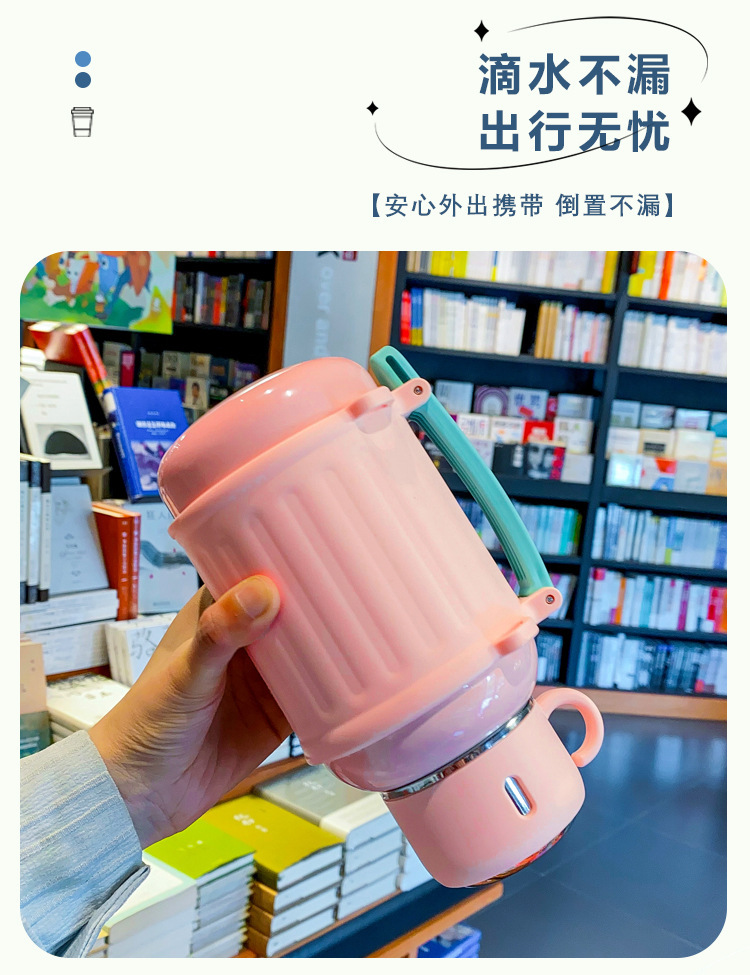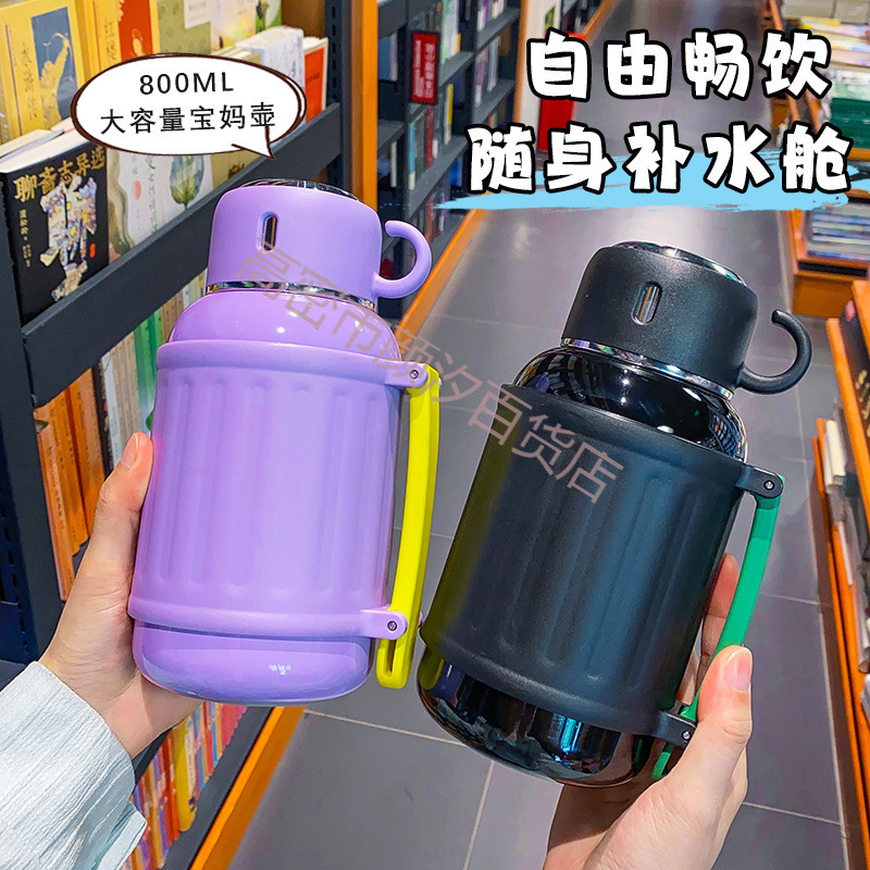 Ins 대용량, 고급스러운 창의적인 크림 스타일 보온병 컵, 휴대용 물병, 밀짚 주전자, 엄마 주전자, 물컵스토어 가기