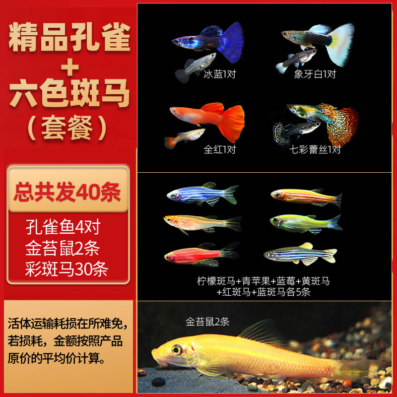• 고급 공작새 4쌍 + 6색 얼룩말 30마리 + 황금이끼쥐 2마리, 총 40마리