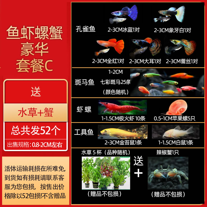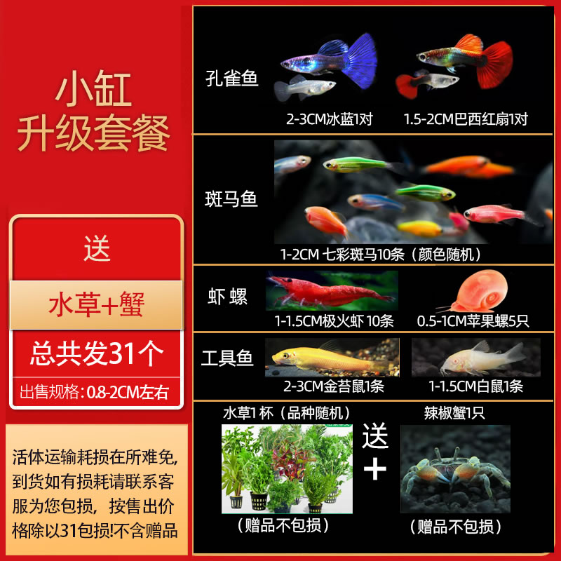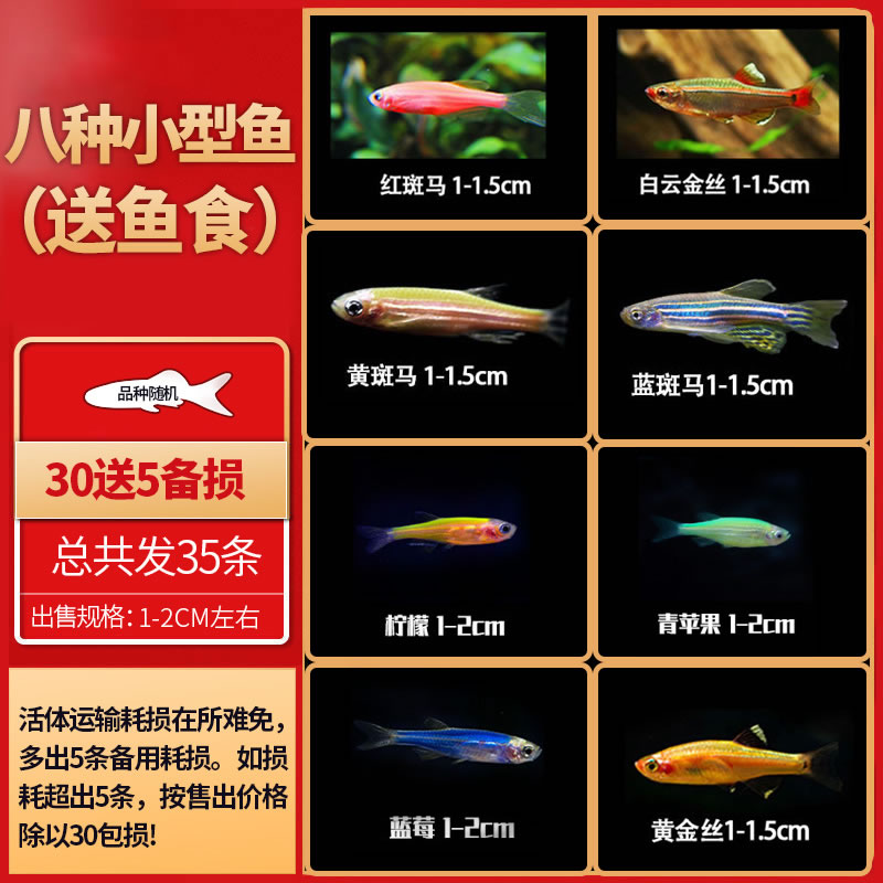• 작은 물고기 8마리, 30마리, 예비 부품 5개 무료, 무작위 품종