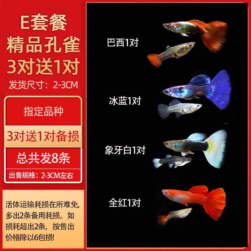 • 패키지 A: 프리미엄 고품질 고퍼치 3쌍, 1쌍 무료, 총 8마리, 지정 품종