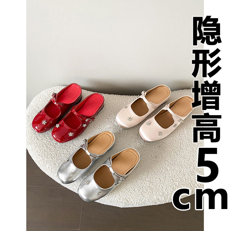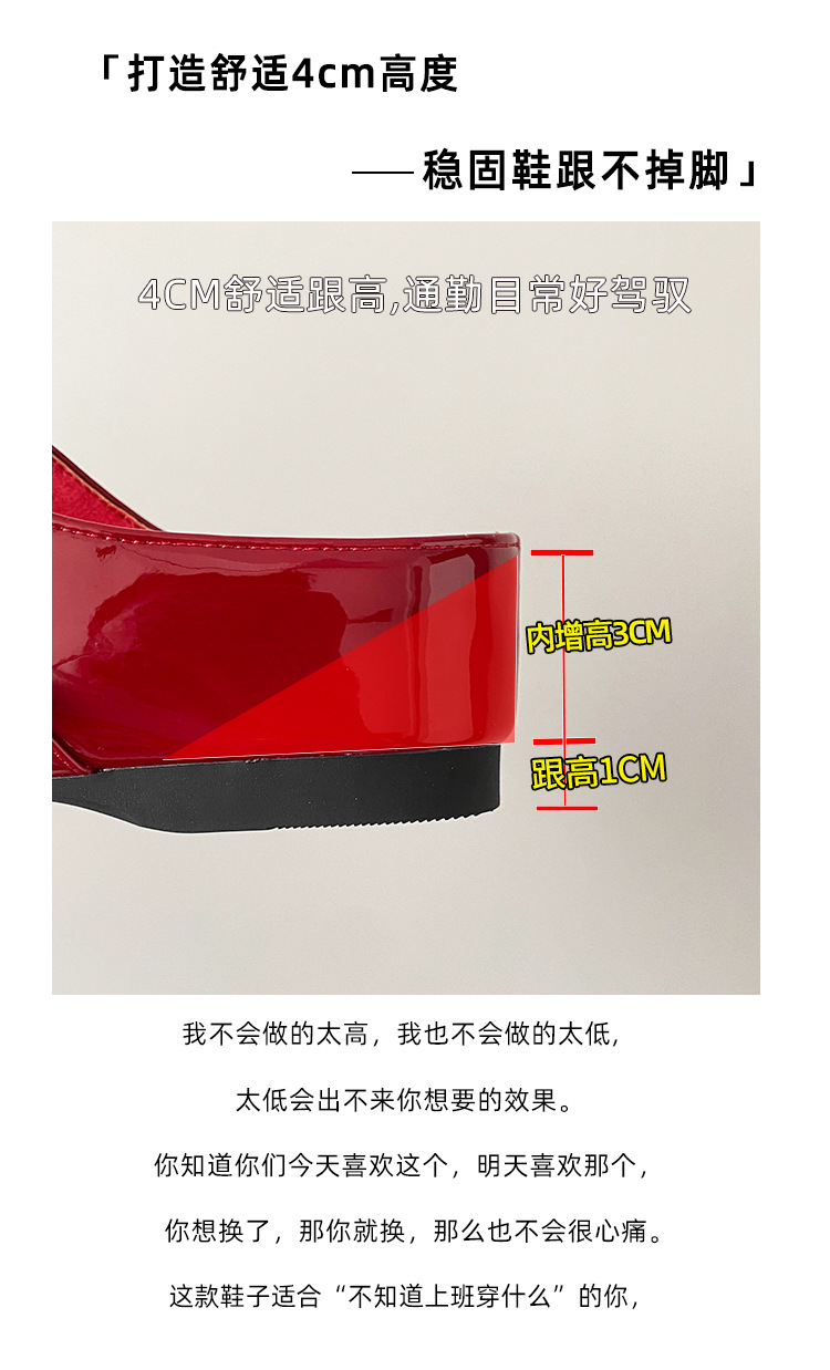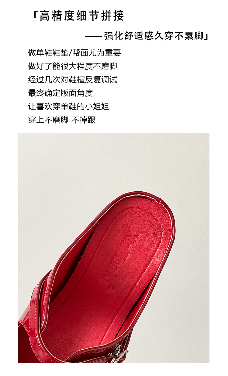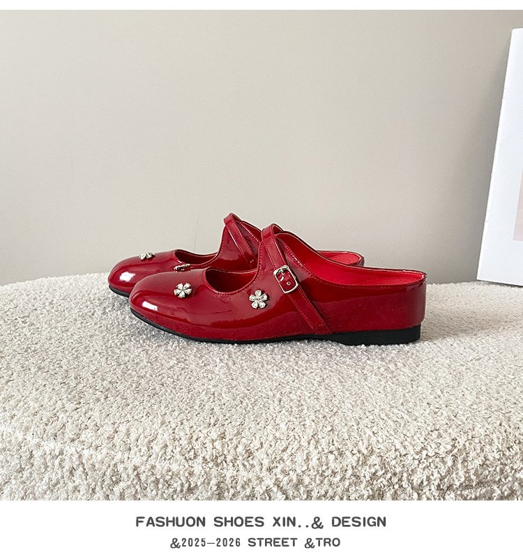 재고 있음】여성용 키높이 앞굽 가리개 슬리퍼, 신상품, 워터다이아몬드 장식, 레트로 레드, 작은 사이즈(33) 뮬 슈즈