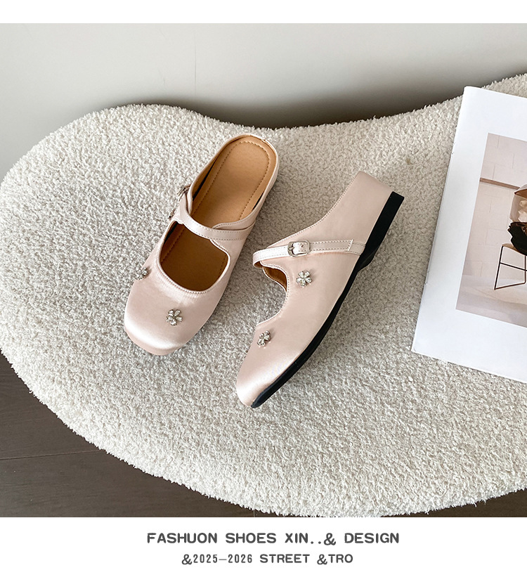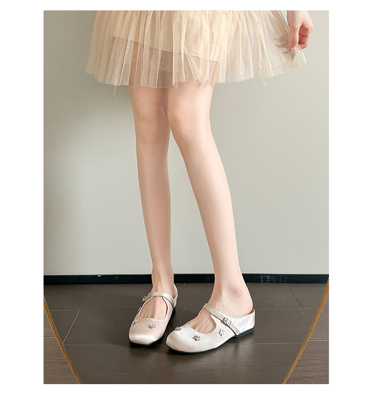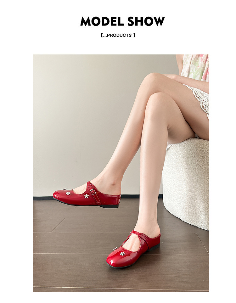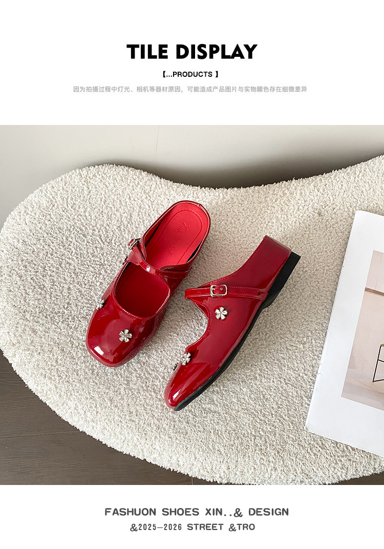 재고 있음】여성용 키높이 앞굽 가리개 슬리퍼, 신상품, 워터다이아몬드 장식, 레트로 레드, 작은 사이즈(33) 뮬 슈즈스토어 가기