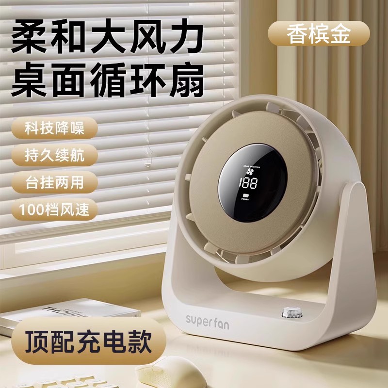 • 탑 충전 모델 [샴페인 골드] 강풍 및 조용한 소리, 100단계 조절 가능, 15m/s 초냉풍