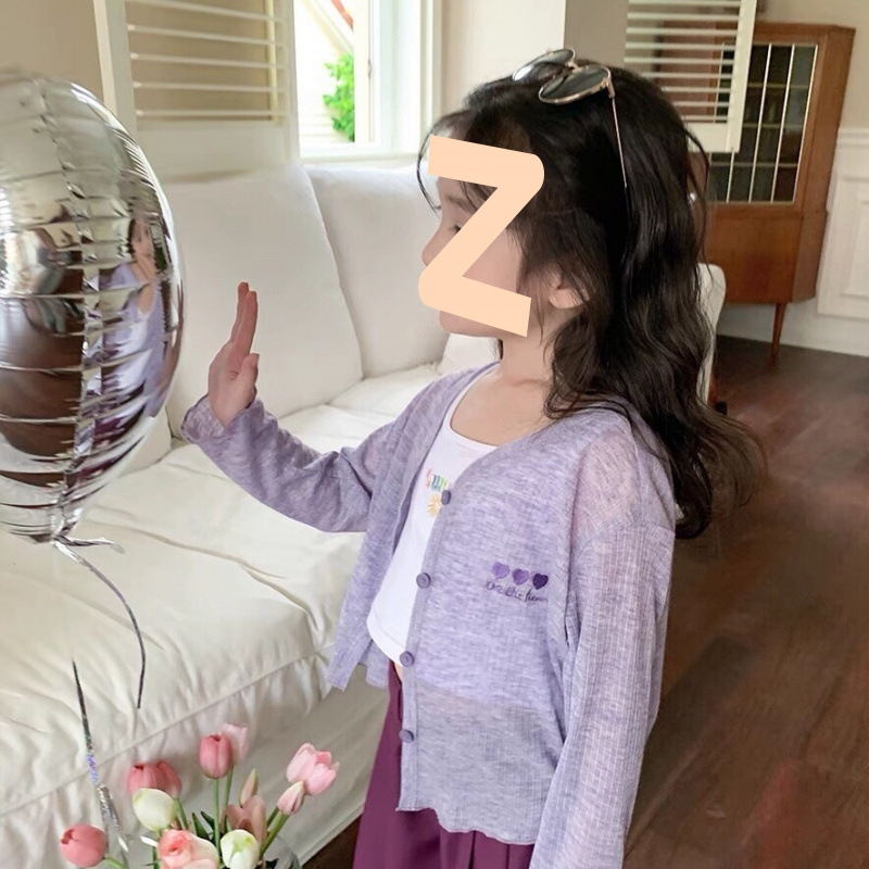 어린이 얼음 실크 태양 보호 의류 여아 V 넥 카디건 아동복 긴 소매 방지 모기 태양 보호 의류 에어컨 아기 얇은 코트스토어 가기