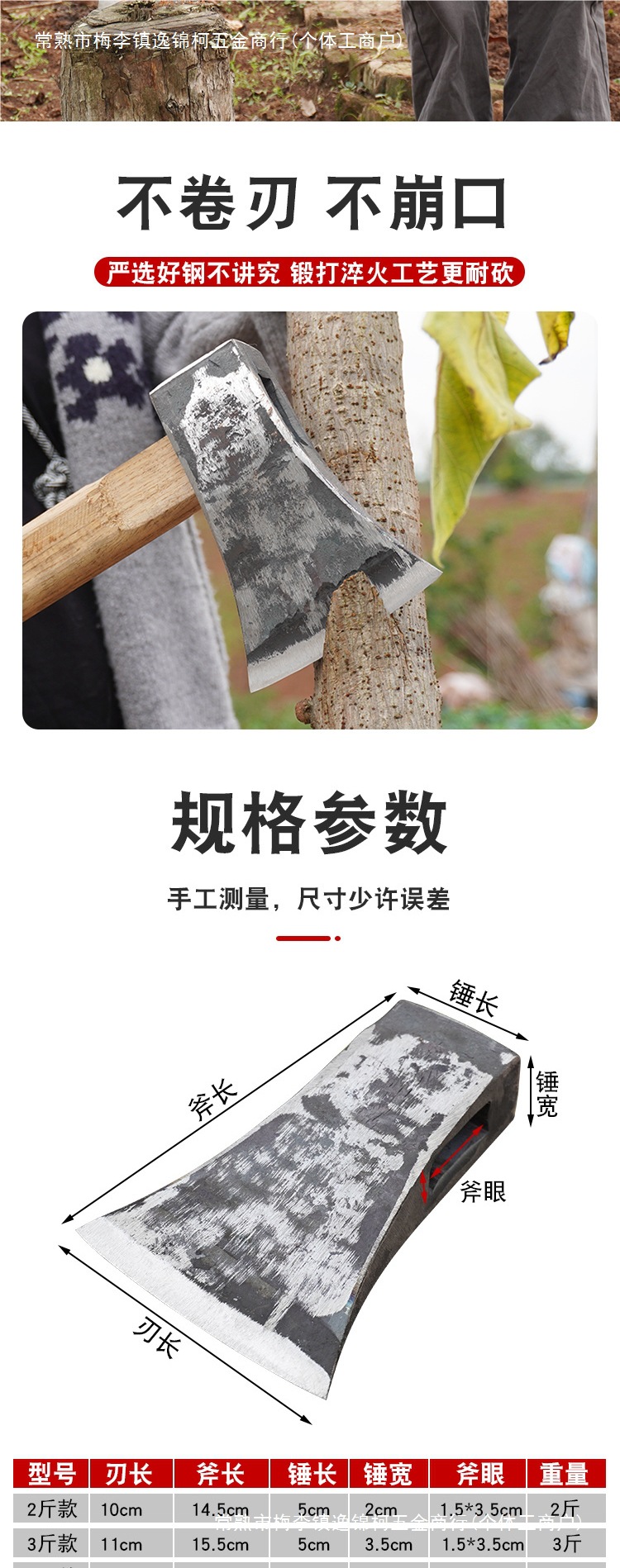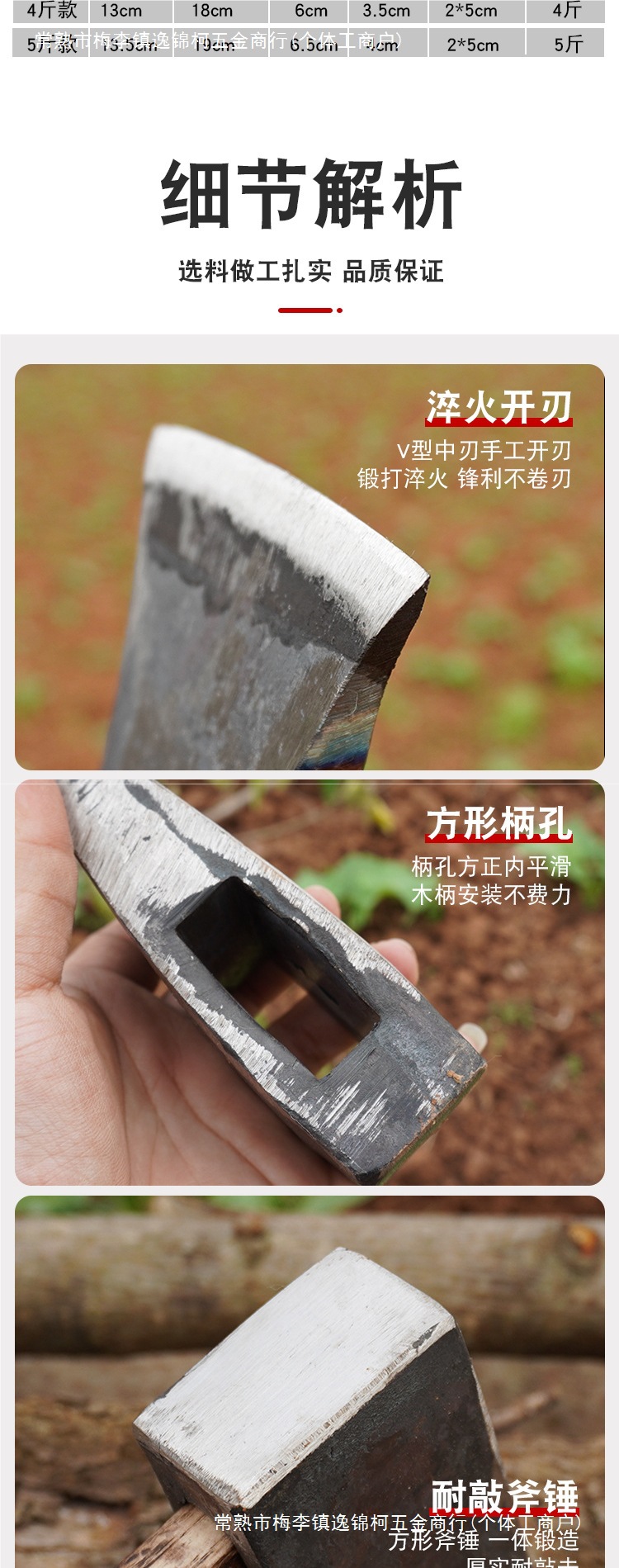 궤도강 단조 사각 구멍 꽃무늬 대형 도끼 장작 벌기용 도끼 야외 산 개척용 도끼 가정용 탄화 손잡이스토어 가기