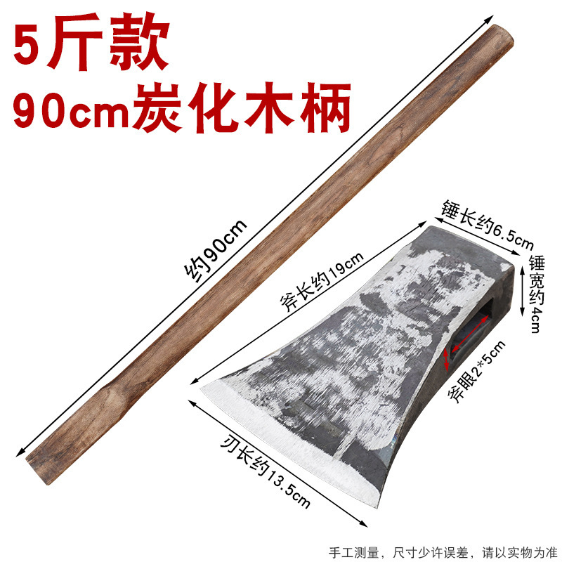 궤도강 단조 사각 구멍 꽃무늬 대형 도끼 장작 벌기용 도끼 야외 산 개척용 도끼 가정용 탄화 손잡이