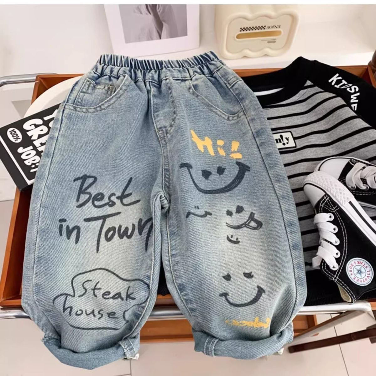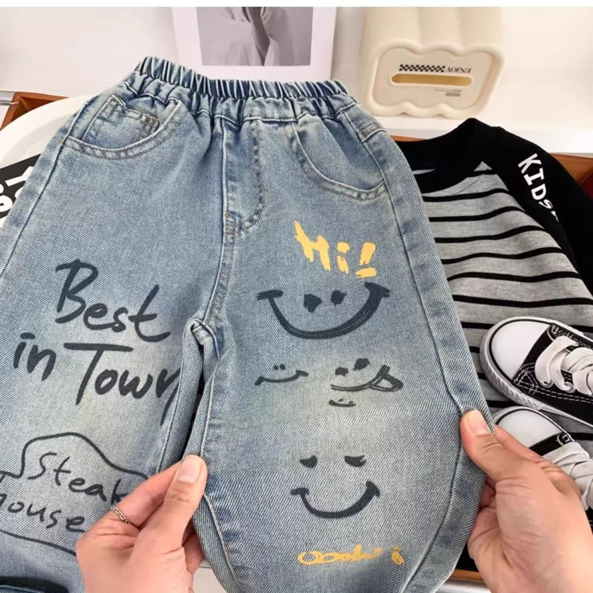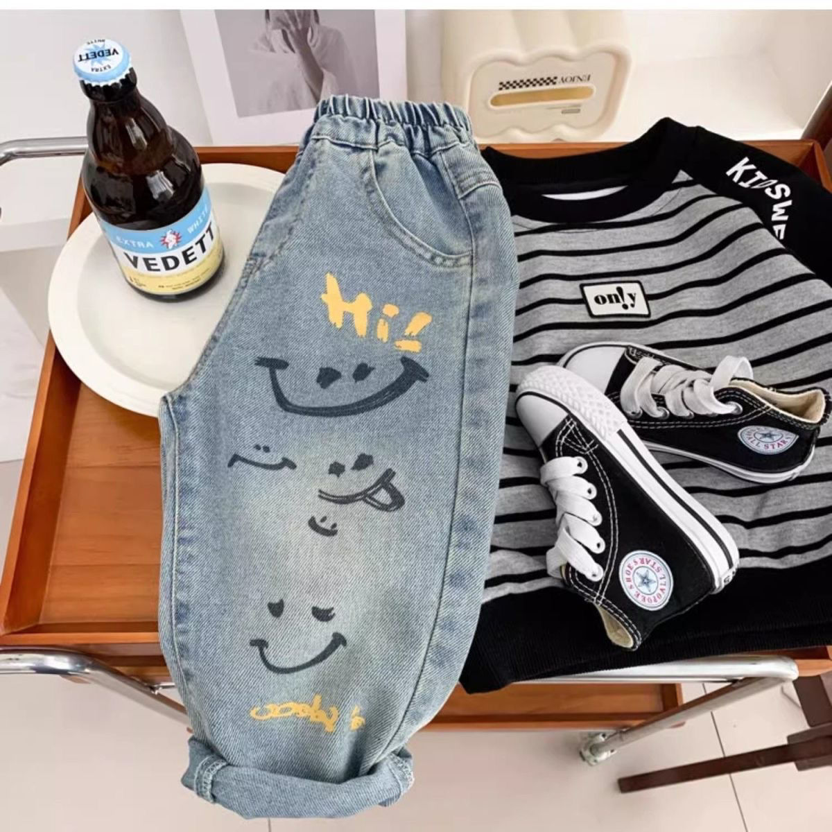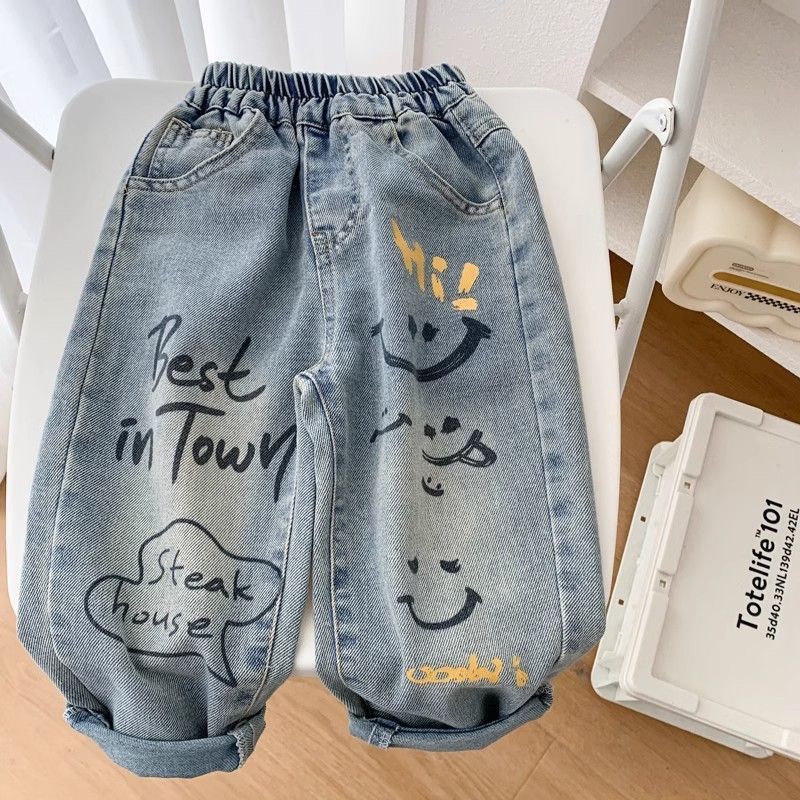 어린이 봄, 가을 청바지 새로운 스타일과 패셔너블한 어린이 캐주얼 패션 그라데이션 청바지는 트렌디하고 다재다능합니다.