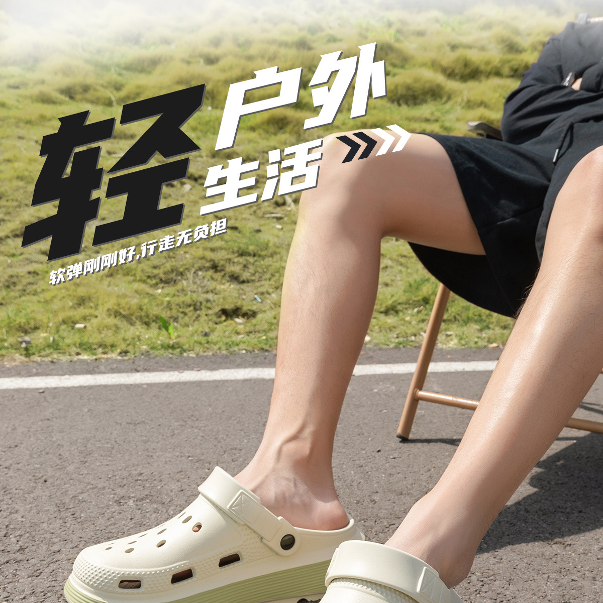 2025 간단한 구멍 신발 해변 야외 미끄럼 방지 두꺼운 똥 느낌 두꺼운 바닥 슬리퍼 여름 야외 착용스토어 가기