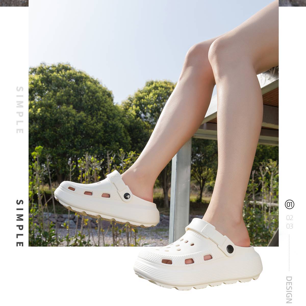 2025 간단한 구멍 신발 해변 야외 미끄럼 방지 두꺼운 똥 느낌 두꺼운 바닥 슬리퍼 여름 야외 착용