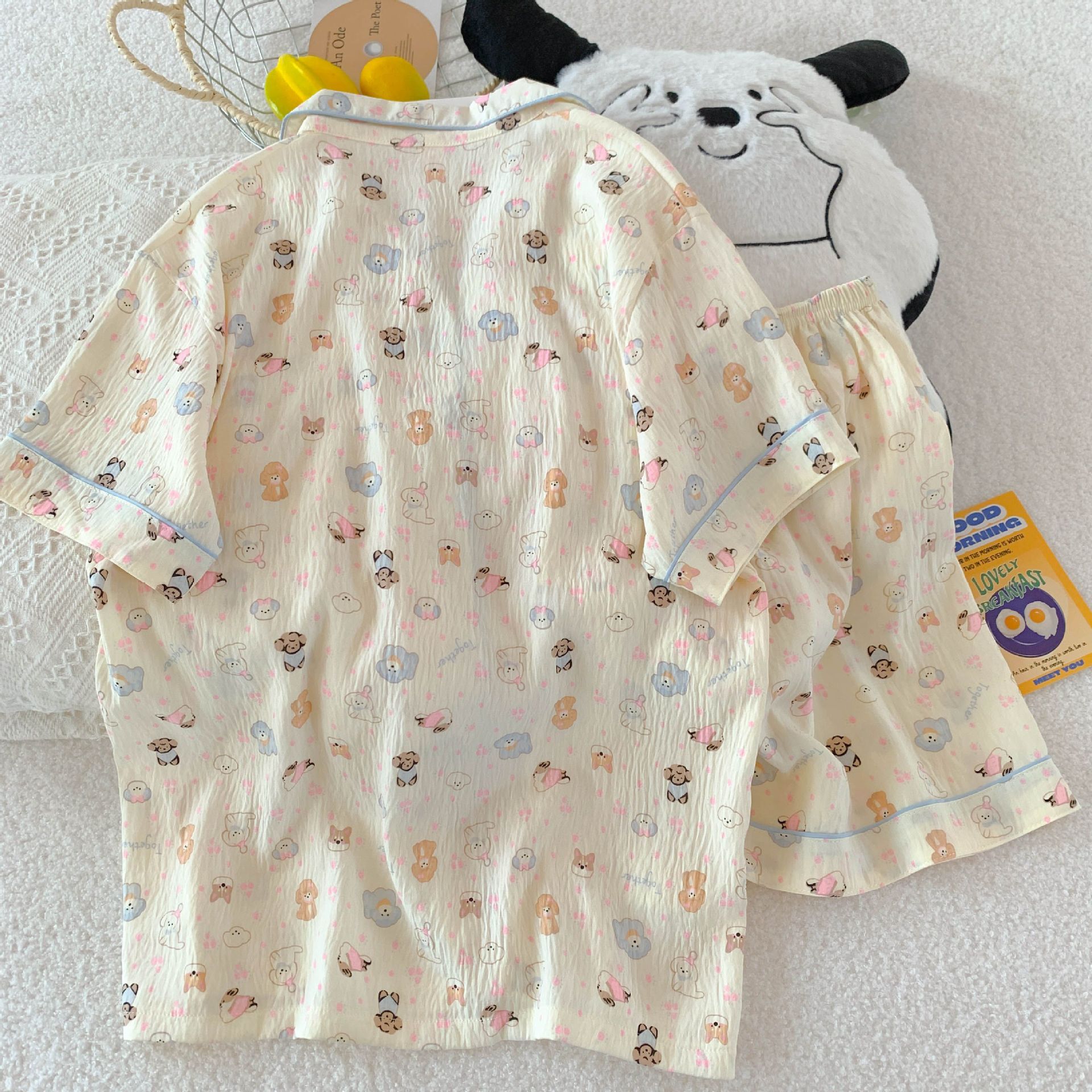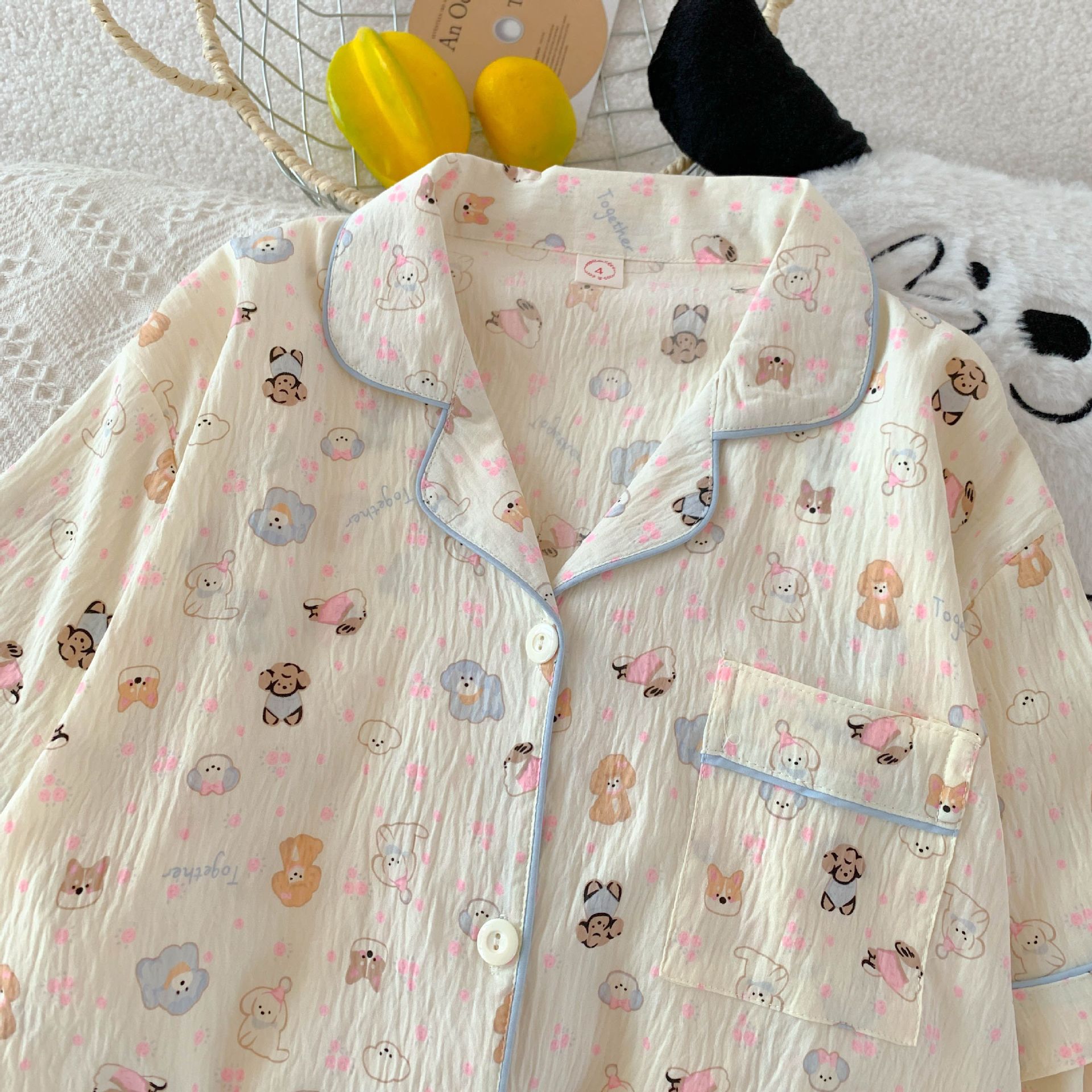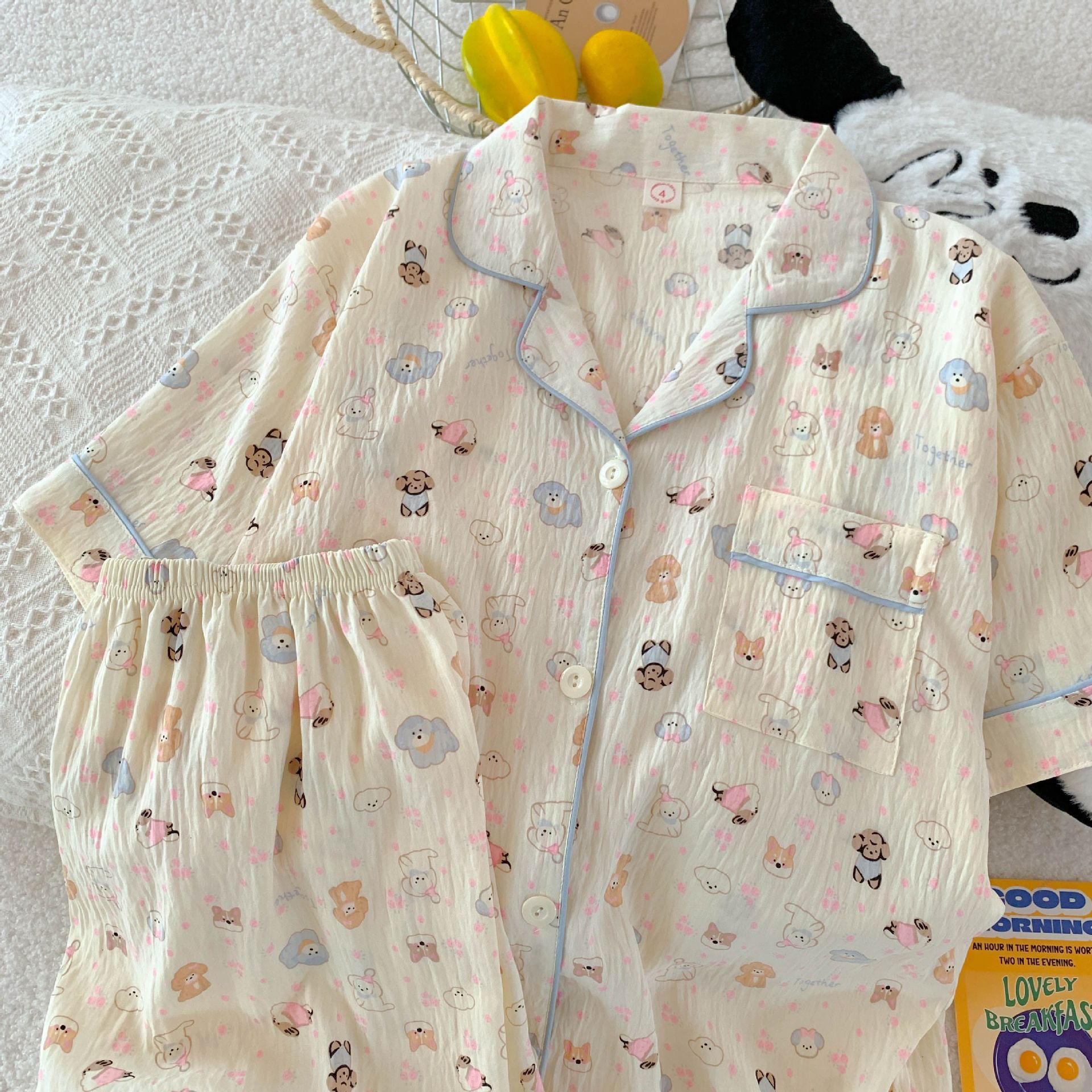일본식 귀여운 만화 강아지 잠옷 여성 반팔 여름 얇은 투피스 구름 면화 학생 한국 스타일스토어 가기