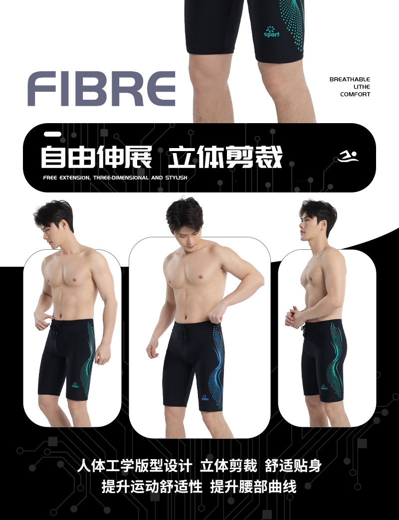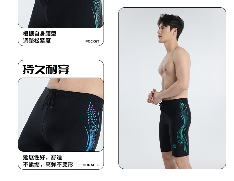 남성용 수영복, 남아용 5부 수영복, 속건성 전문 복서온천 긴 수영복 세트 및 장비