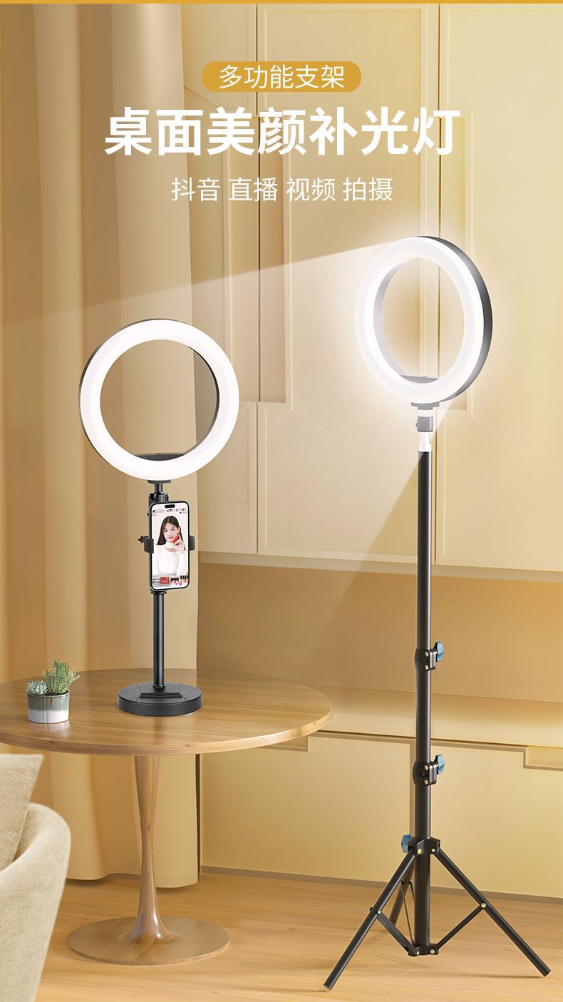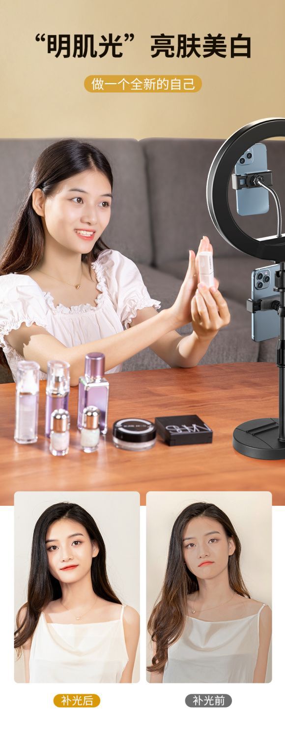 라이브 스트리밍 필 라이트, 조명이 포함된 휴대폰 홀더, 3-in-1 촬영용 풀 세트, 특수 셀카 뷰티 데스크탑, 완전 자동스토어 가기