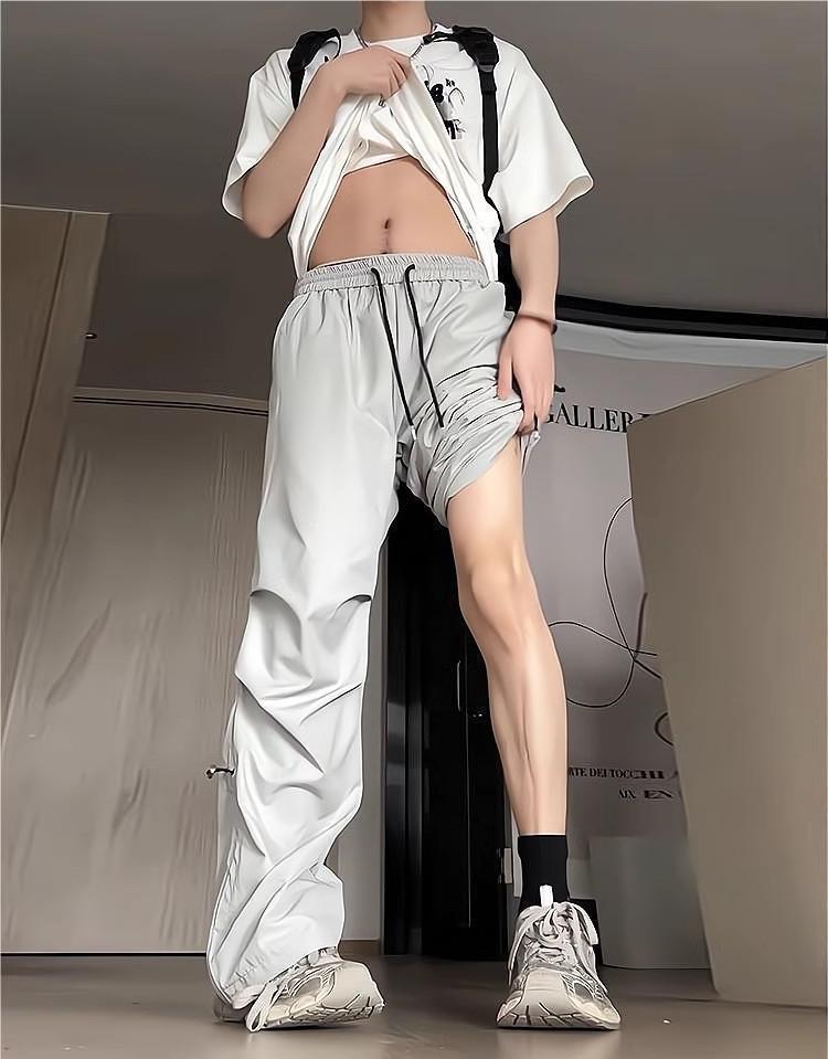 미국 낙하산 병사 툴링 바지 남자의 새로운 패션 브랜드 하이 스트리트 주름 드로우 스트링 디자인 센스 올매치 기능성 충전 바지스토어 가기