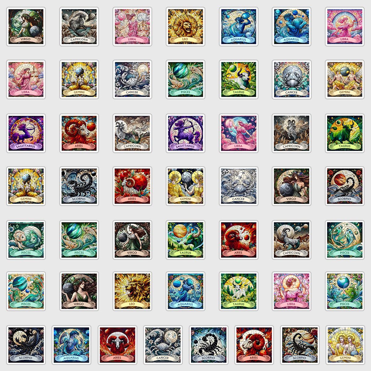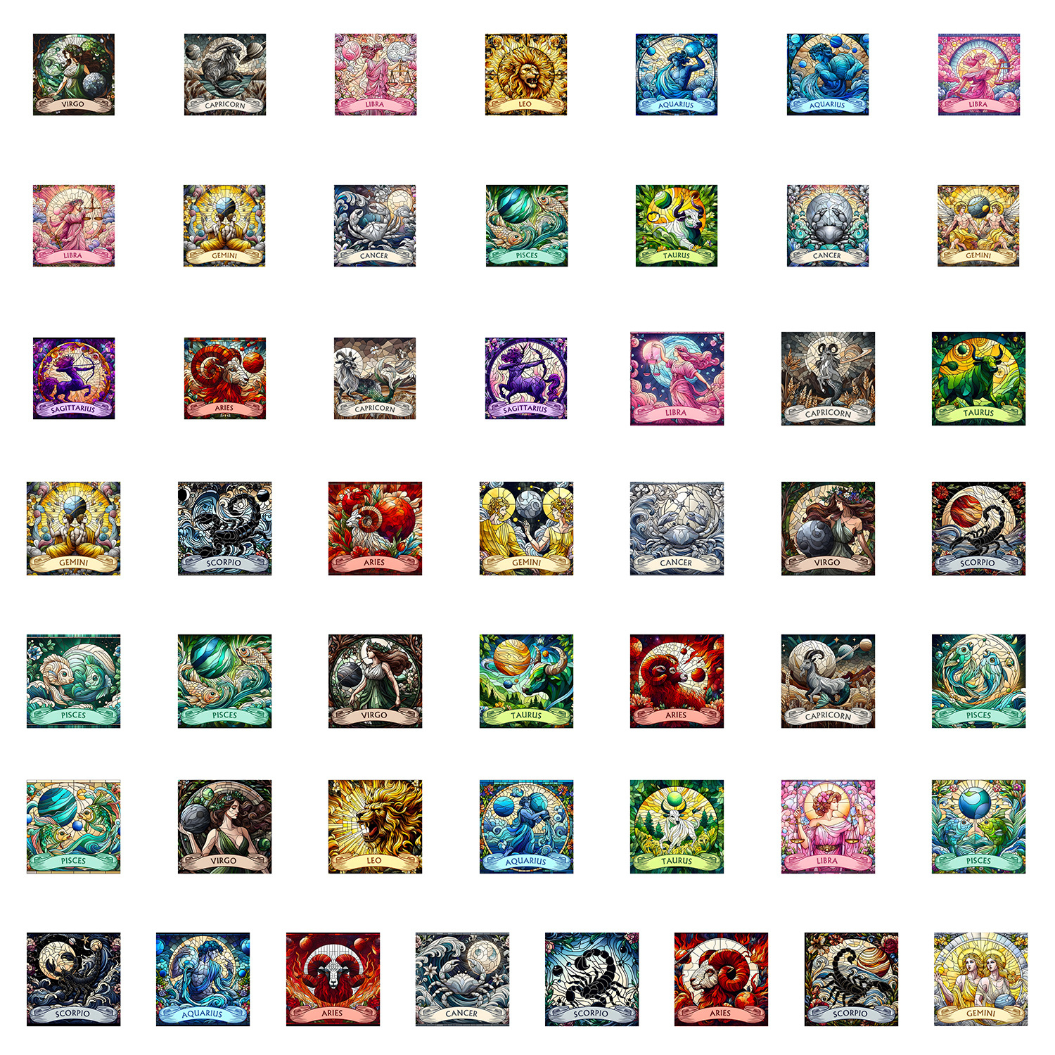 국경 간 50 조각 12 별자리 낙서 스티커 워터 컵 휴대 전화 방수 장식 스티커 별자리 DIY 스티커 도매스토어 가기