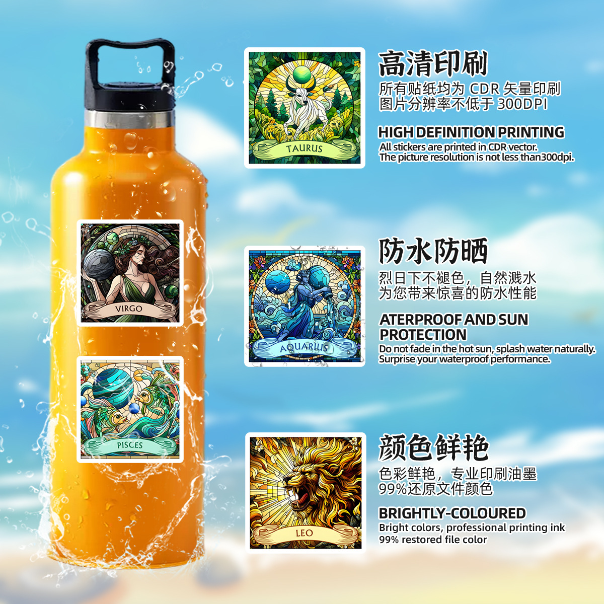 국경 간 50 조각 12 별자리 낙서 스티커 워터 컵 휴대 전화 방수 장식 스티커 별자리 DIY 스티커 도매