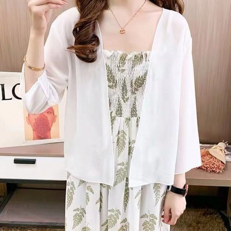한국 스타일 패션 핫 소녀 유행 레오파드 프린트 레이스 업 셔츠 여성 여름 드레이프 랜턴 슬리브 얇은 루즈 쉬폰 셔츠스토어 가기