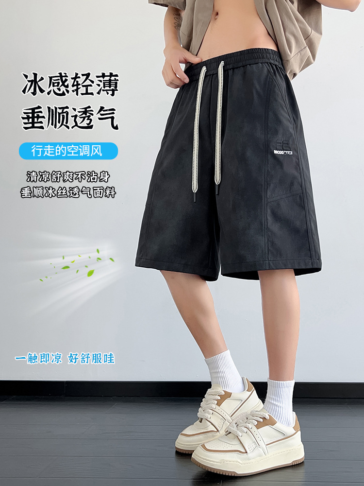 반바지 남성 여름 유행 브랜드 미국 남성복 얇은 느슨한 오버롤 캐주얼 남성 스트레이트 남성 5 점 바지 유행스토어 가기