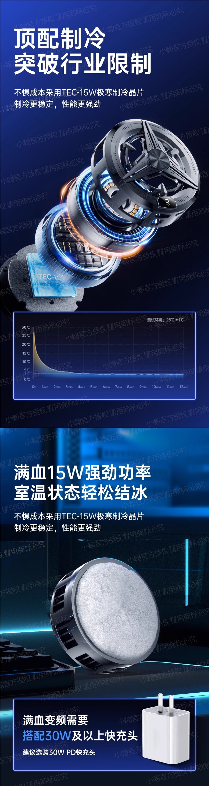 냉각 음소거 열 방출 자기 기장 검은 상어 라이브 2025 휴대 전화 라디에이터 냉동 사과 반도체