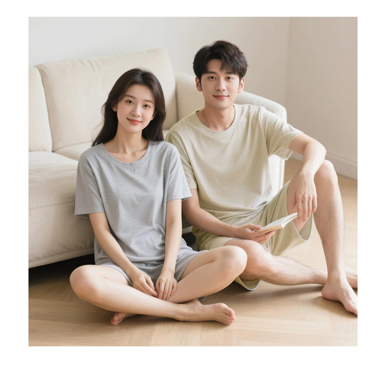 남성용 새로운 여름 민트 시원한 잠옷, 반팔 반바지, 루즈하고 얇은 여성용 홈웨어, 청소년 정장스토어 가기