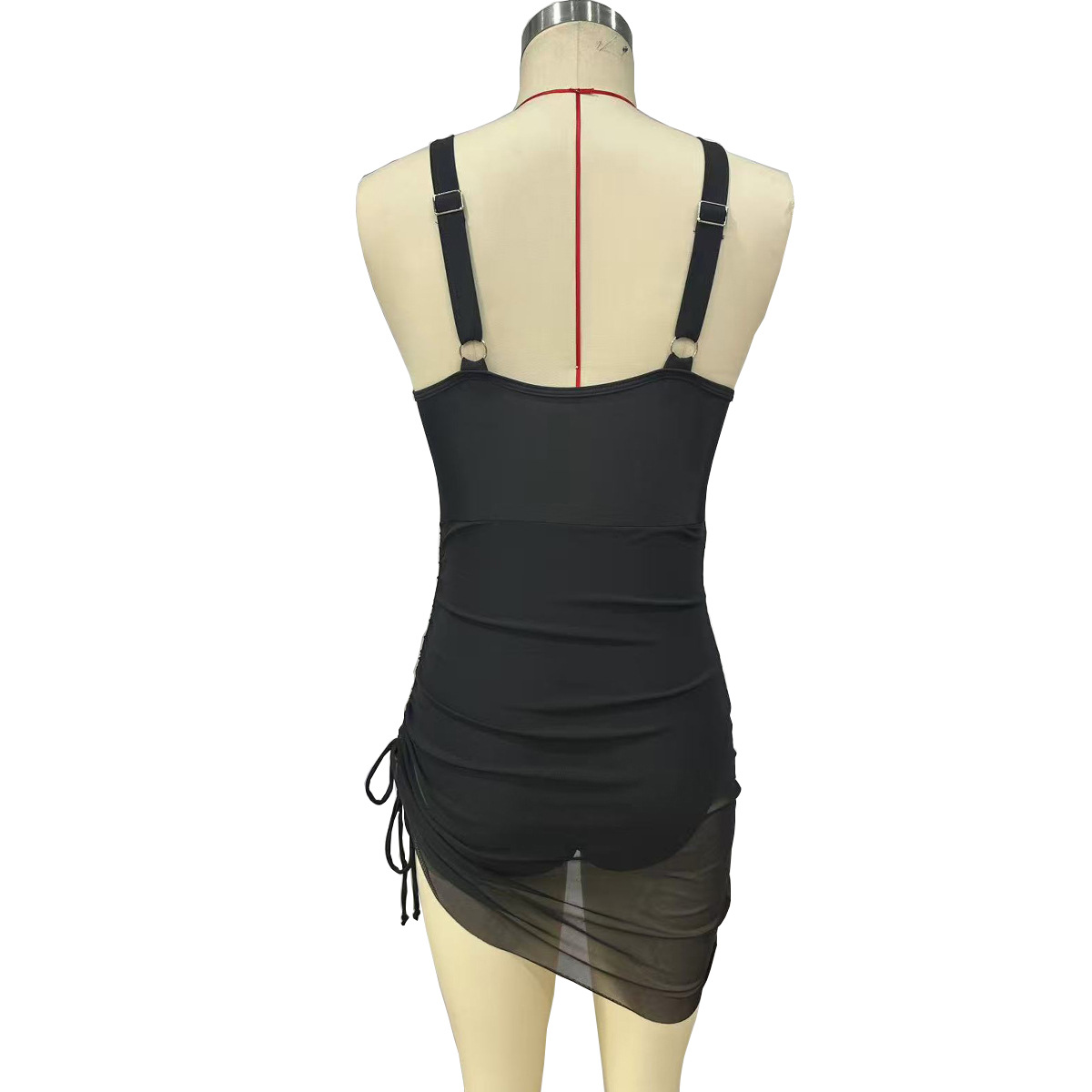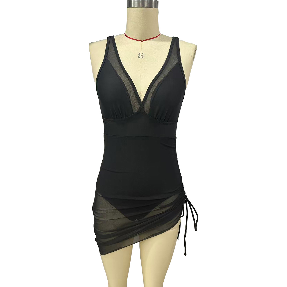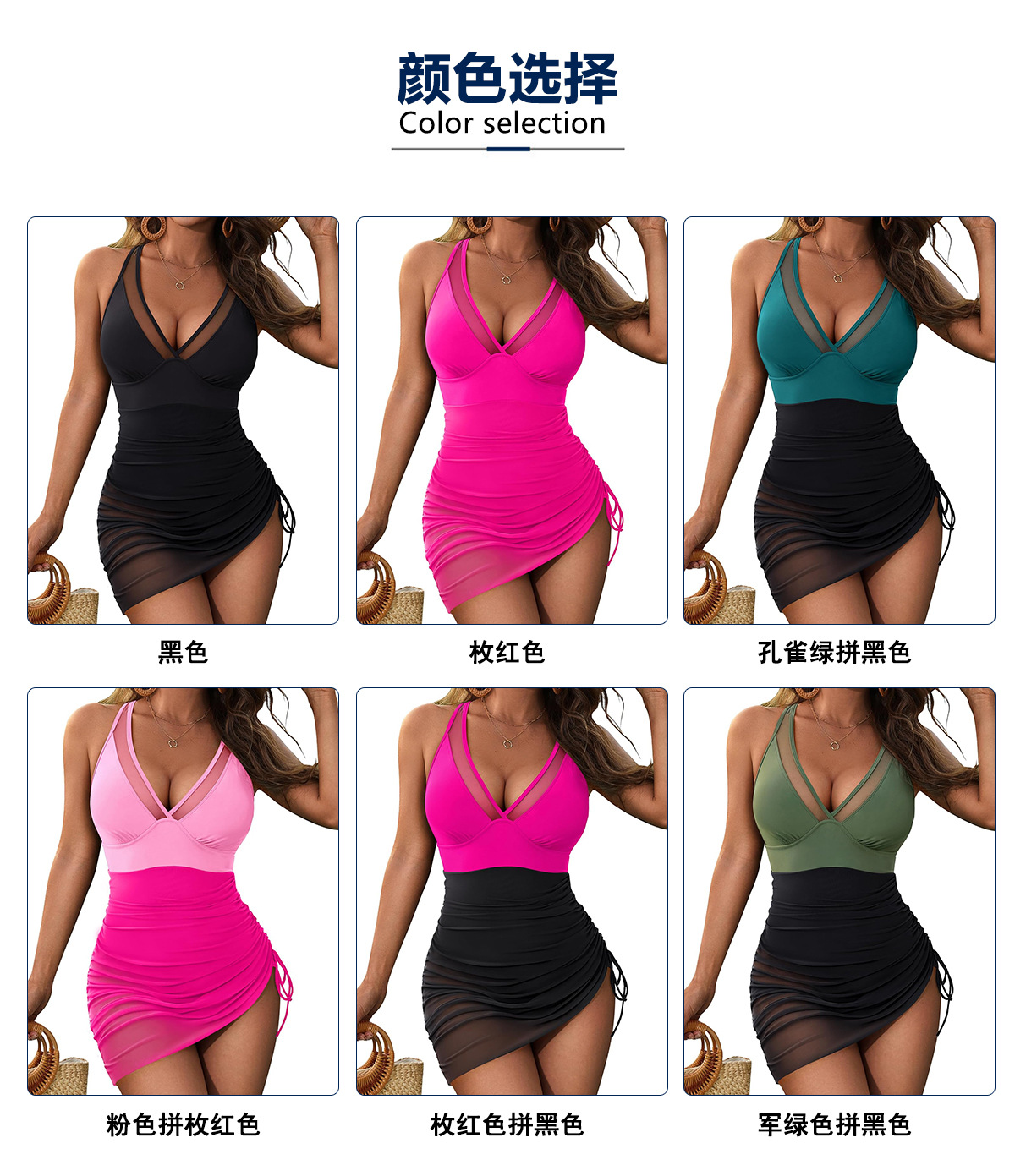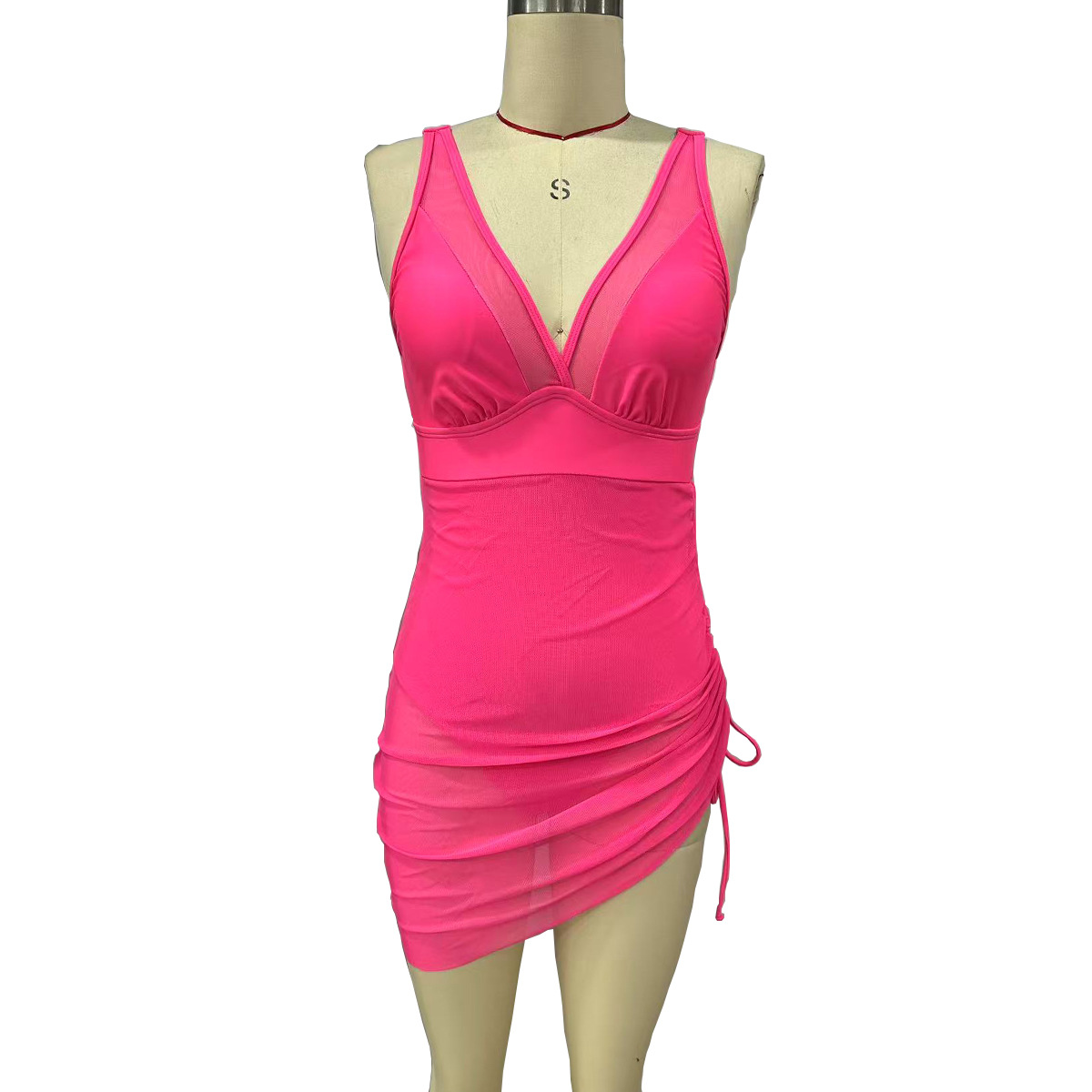 국경을 넘나 드는 유럽과 미국의 원피스 수영복 여성용 V 넥 메쉬 스티칭 사이드 드로 스트링 수영복 고기로 덮인 슬림 핏 수영복