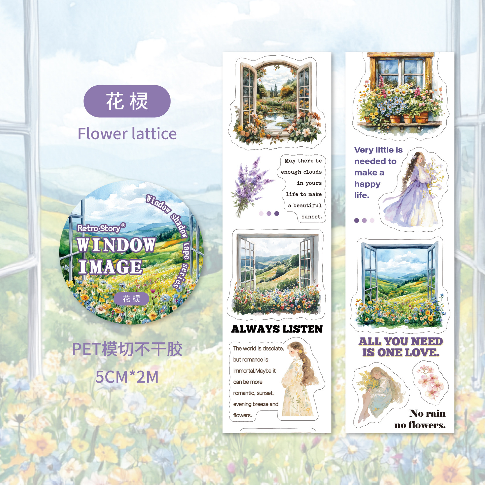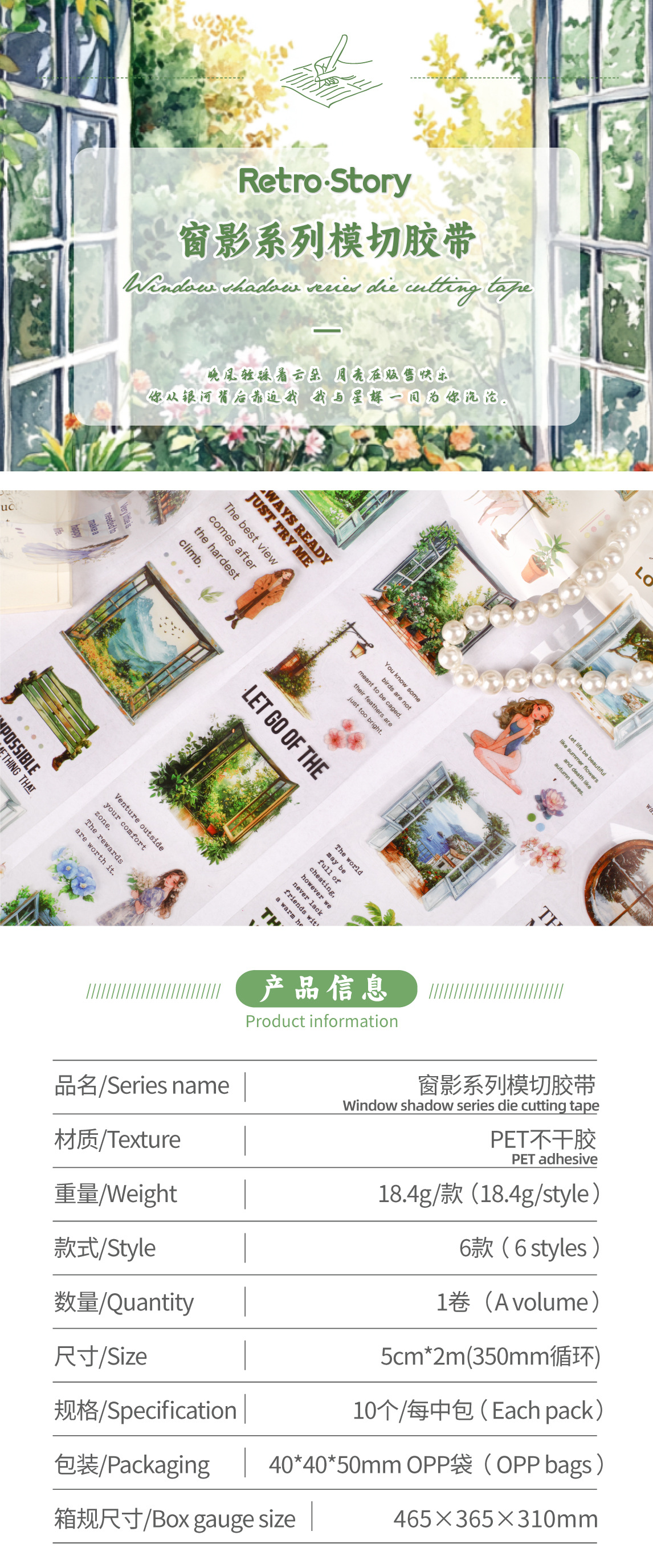 레트로 스토리 다이 커팅 접착 PET 테이프 창 그림자 시리즈 라이프 핸드 계정 장식 베이스 페이스트 6