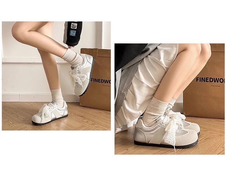 2025 새로운 실버 발레 훈련 신발 여성 레트로 틈새 얇은 바닥 플랫 봄과 가을 스포츠 레저 올 매치 보드 신발