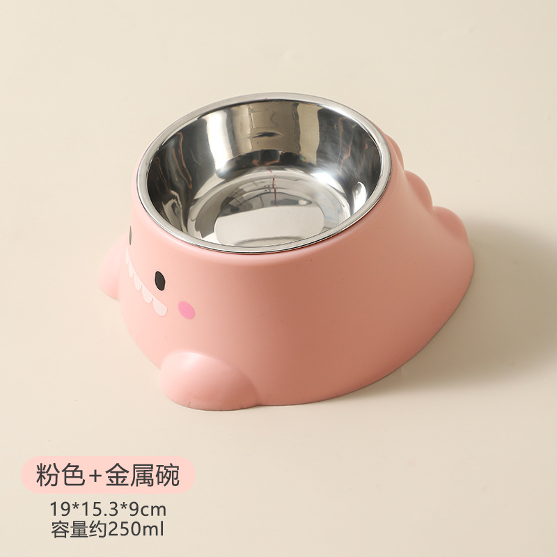 새로운 공룡 고양이 그릇 안전하고 건강한 스테인레스 스틸 개 그릇 보호 자궁 경부 척추 비스듬한 애완 동물 그릇 식수 그릇 먹이 그릇스토어 가기