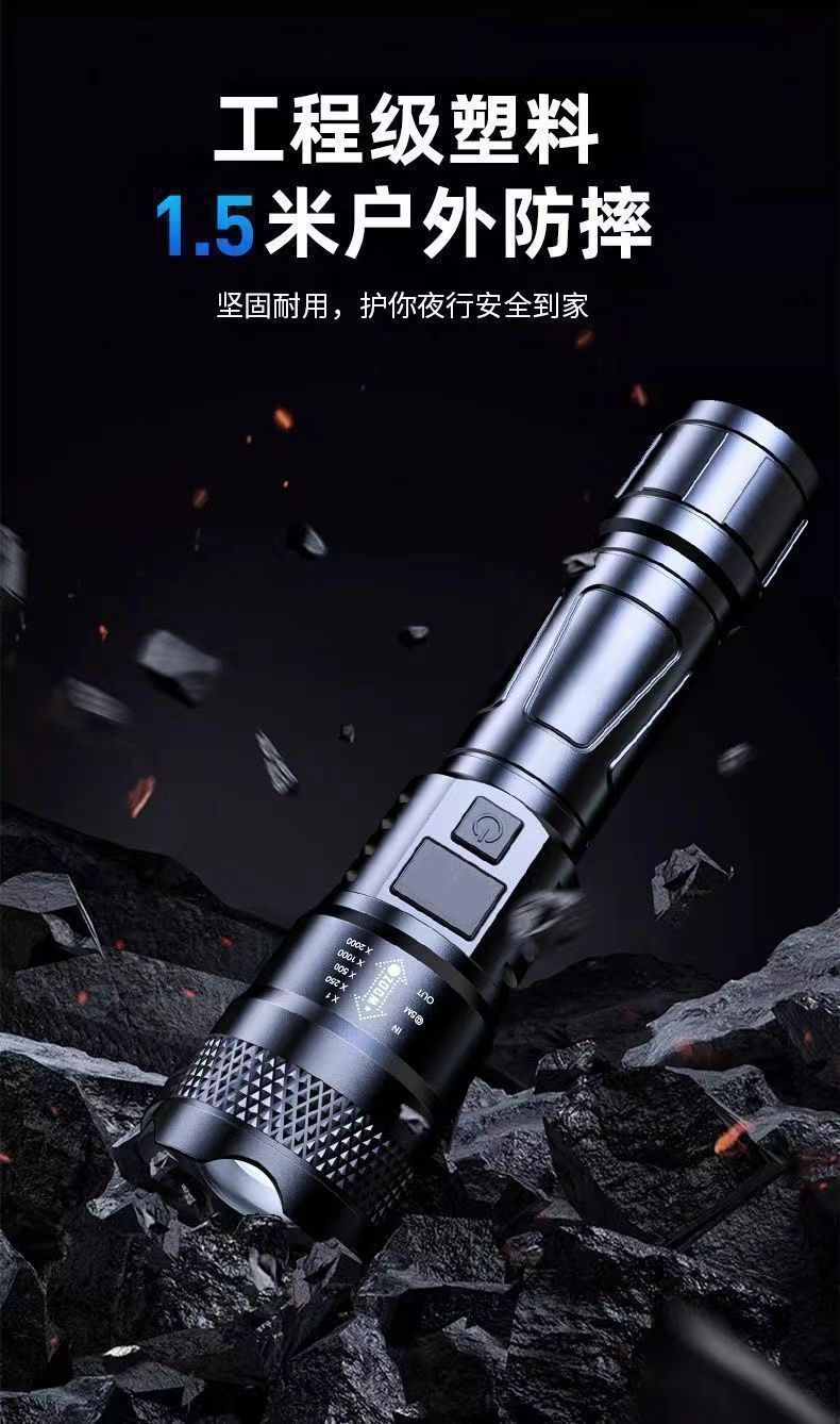 특수 부대 손전등 강한 빛 충전식 비상 조명 레이저 빛 배터리 수명 매우 긴 LED 조명 야외 조명