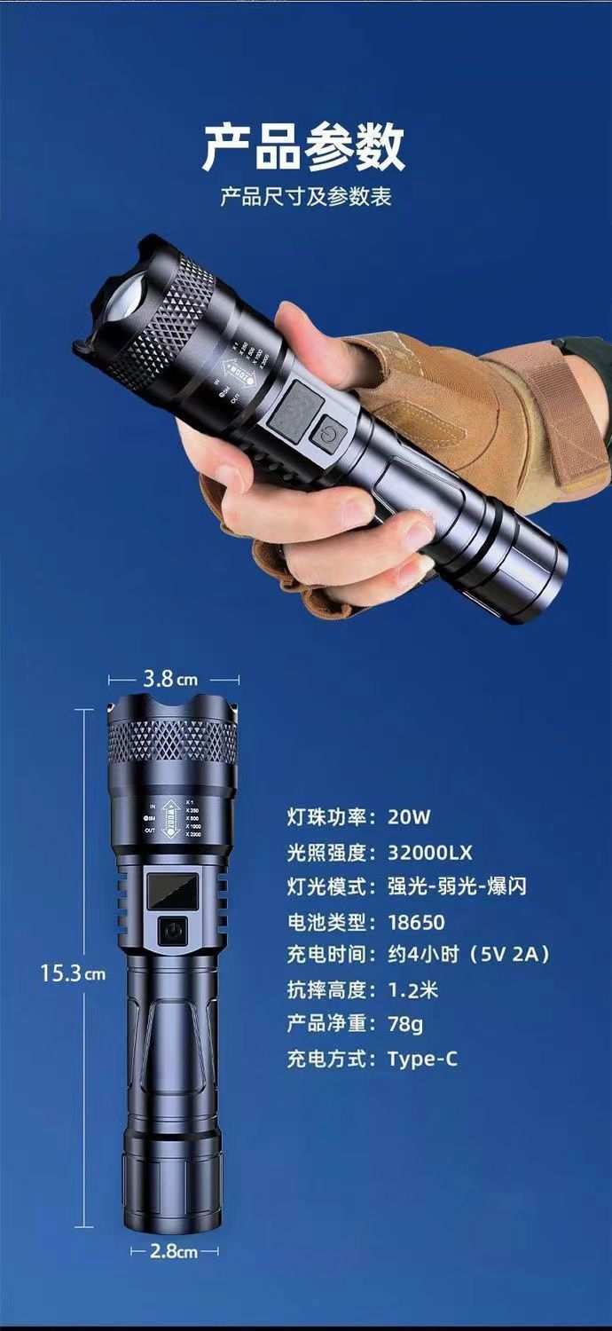 특수 부대 손전등 강한 빛 충전식 비상 조명 레이저 빛 배터리 수명 매우 긴 LED 조명 야외 조명스토어 가기