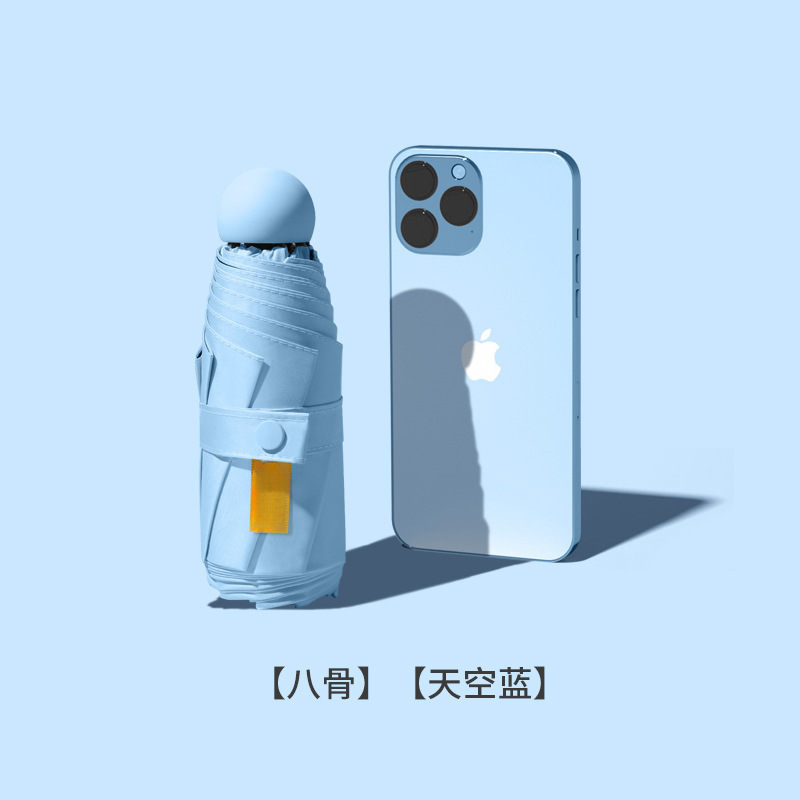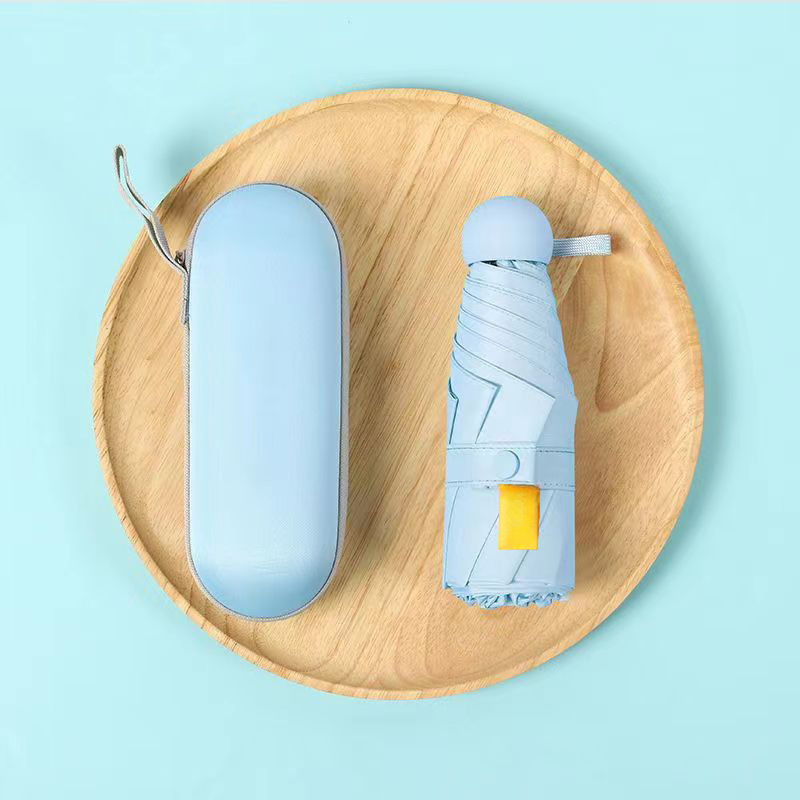 • 하늘색 + 캡슐 가방 [Six Bones 50% off 캡슐 우산 컴팩트하고 휴대 가능한 UPF50+ 전문 자외선 차단]