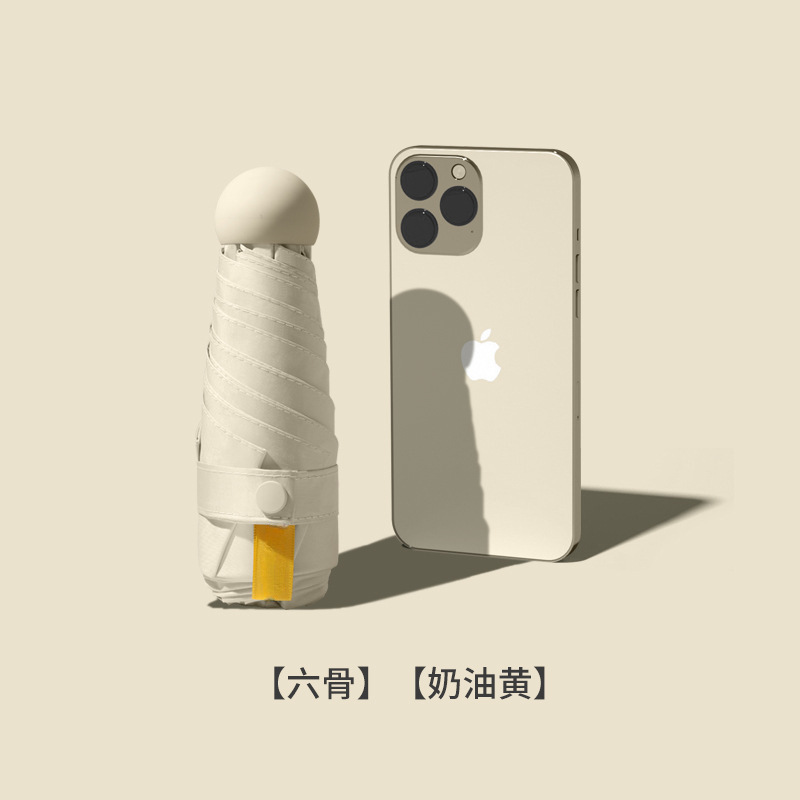 • 크림옐로우 + 캡슐가방 [식스본 50% off 캡슐우산 컴팩트하고 휴대성이 뛰어난 UPF50+ 프로페셔널 자외선 차단]