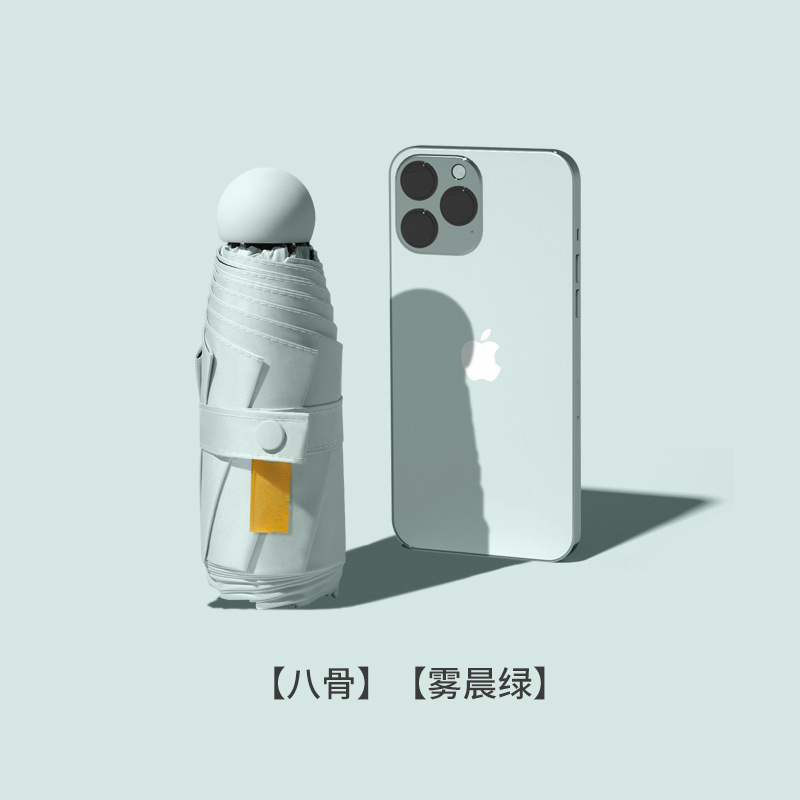 • 모닝 미스트 그린 [에잇 본즈 50% off 초대형 캡슐 우산 컴팩트 휴대용 UPF50+ 프로페셔널 자외선 차단]