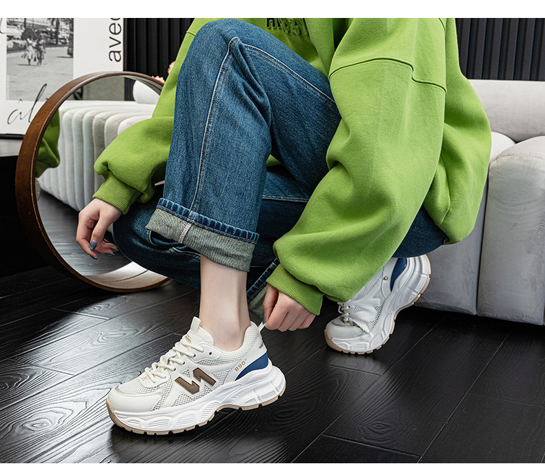 여성을 위한 인기 있는 메쉬 통기성 두꺼운 밑창 아빠 신발, 2025년 여름 새로운 자기 에너지 진동 다기능 마사지 신발스토어 가기