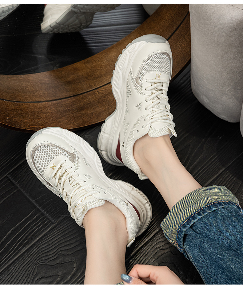 여성을 위한 인기 있는 메쉬 통기성 두꺼운 밑창 아빠 신발, 2025년 여름 새로운 자기 에너지 진동 다기능 마사지 신발