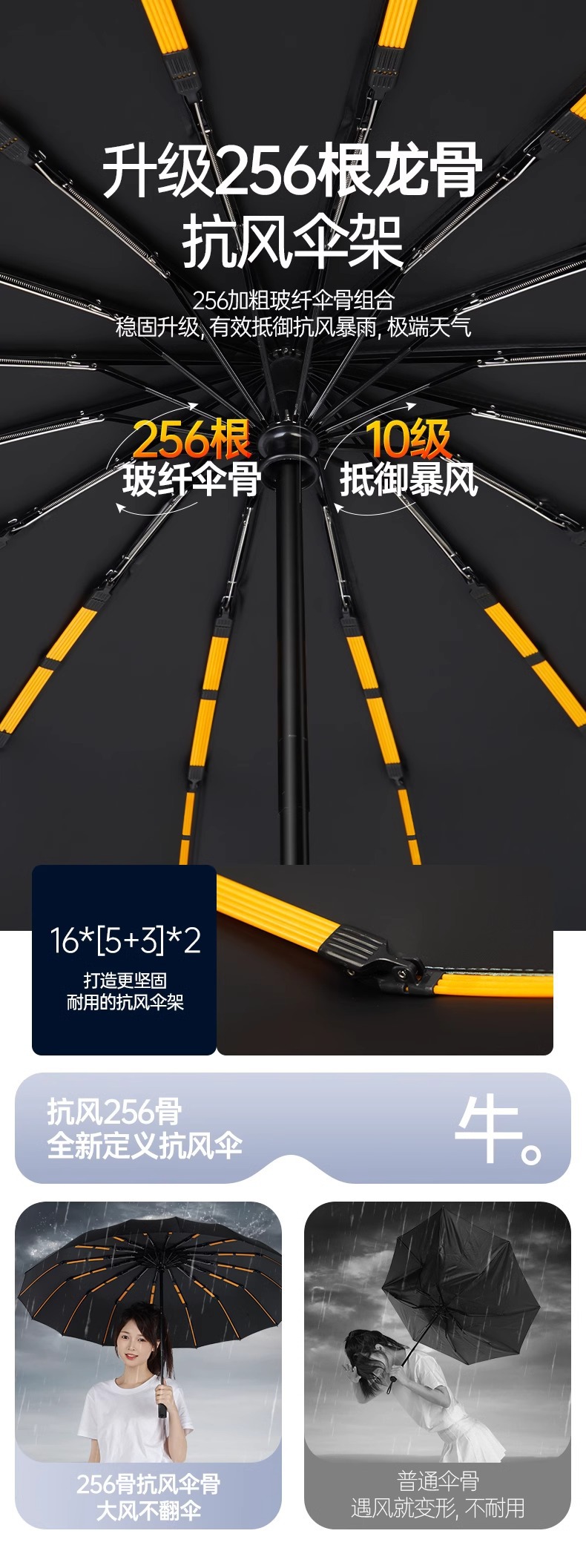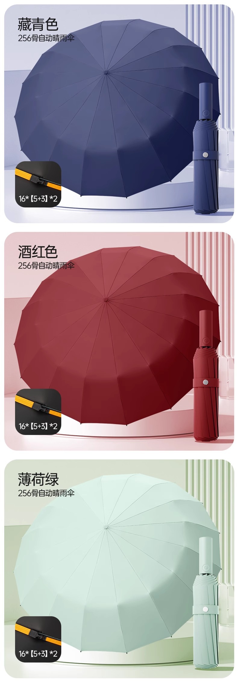 256본 자동 폭풍우 방지 우산, 확대, 두껍고 강화된 접이식 우산, 남성용 및 여성용 비 또는 빛 우산, 광고 우산