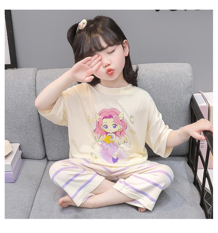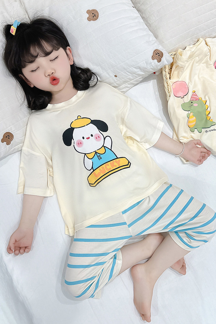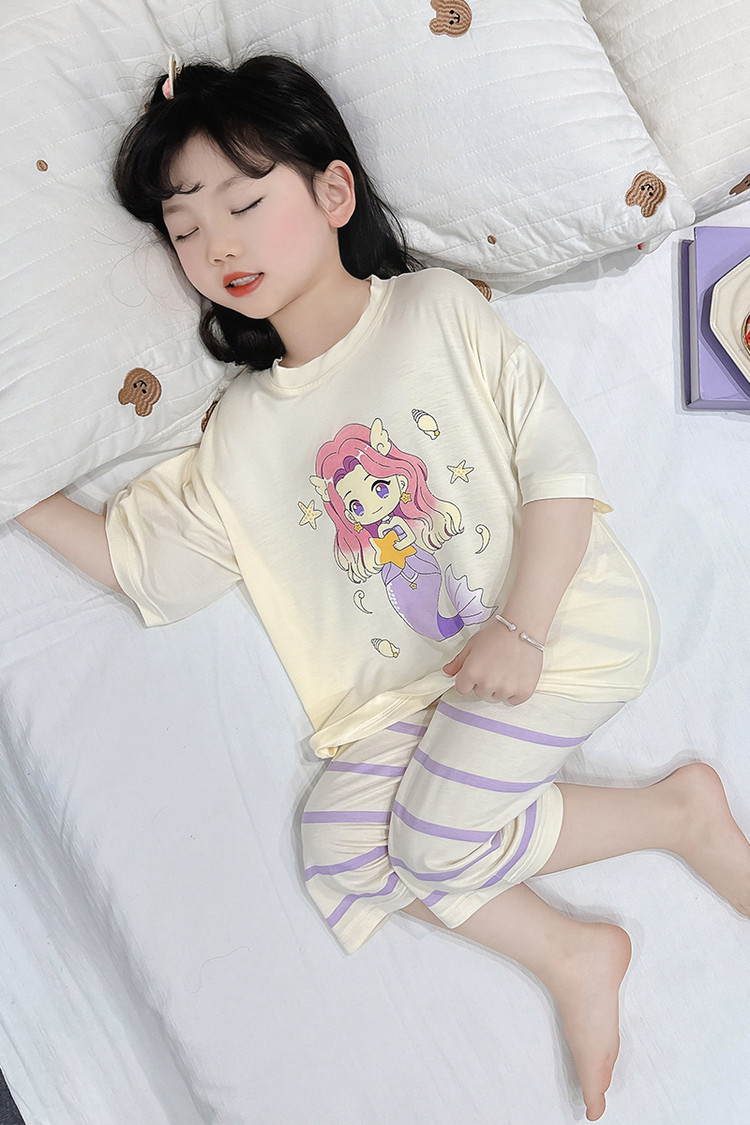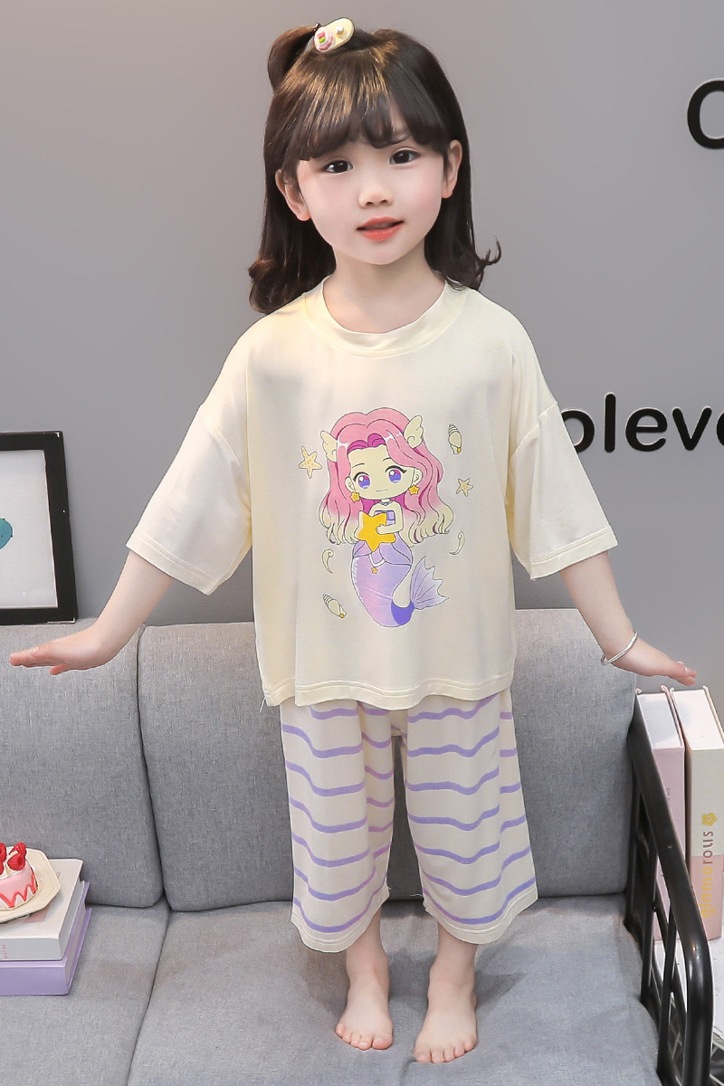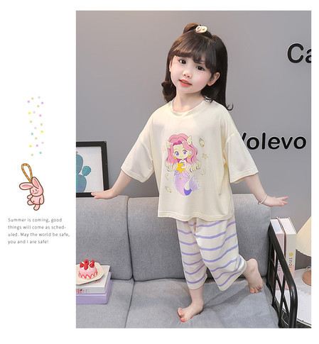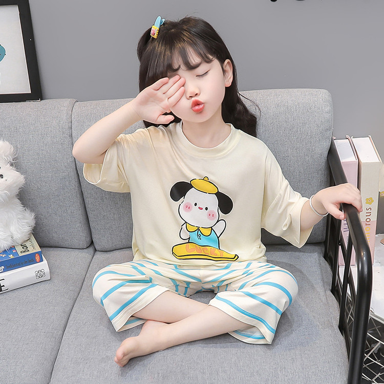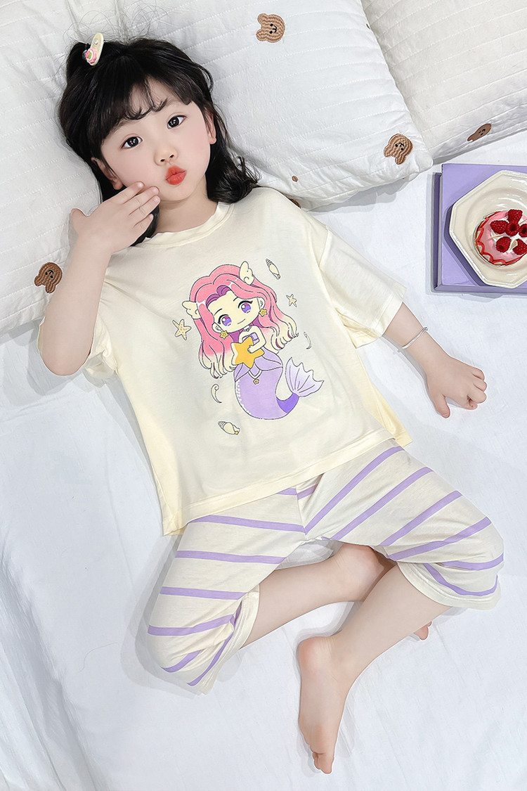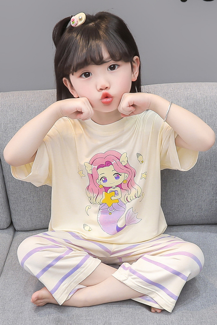 아기 잠옷 여름 얇은 모달 2025 새로운 소녀 분할 에어컨 옷 소녀의 집 옷 여름 세트스토어 가기