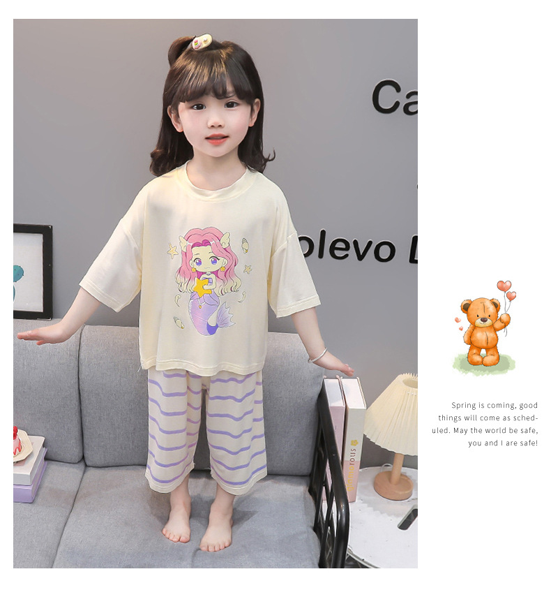 아기 잠옷 여름 얇은 모달 2025 새로운 소녀 분할 에어컨 옷 소녀의 집 옷 여름 세트