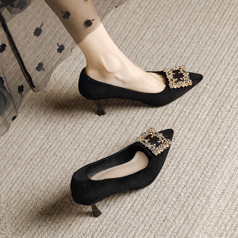 여성을 위한 프렌치 라인스톤 와이드하고 지치지 않는 하이힐 2025 신상 3cm 5cm 7 전문 작업화스토어 가기
