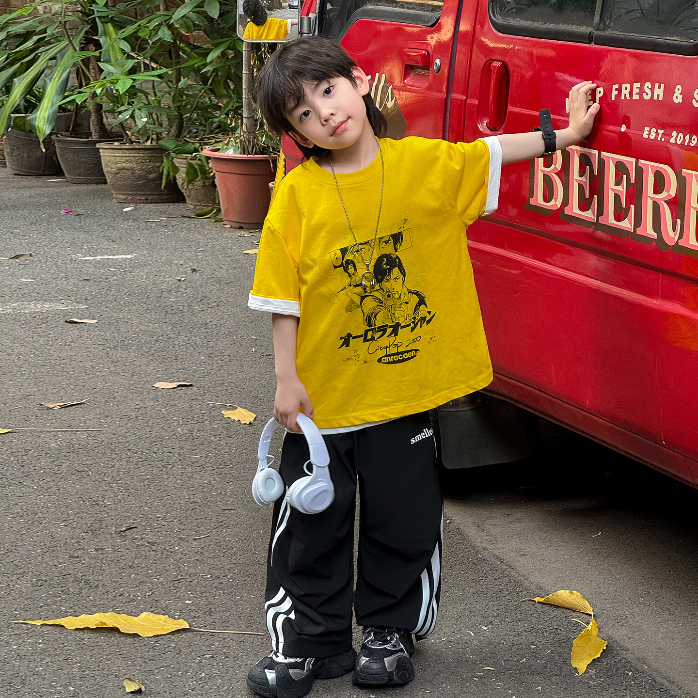 [여름 정리 세일] 2025 아동복 일본 만화 프린트 소년 티셔츠 트렌디하고 시원한 루즈한 아동용 반팔스토어 가기