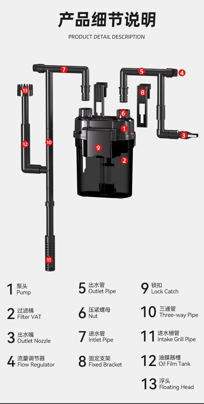 鱼缸过滤器壁挂过滤 水族外置小型低水位 外挂式亚马逊新款过滤桶