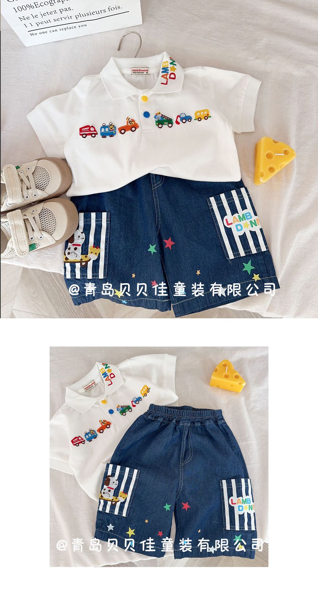 • 1676 만화 자수 강아지 반바지 데님 블루